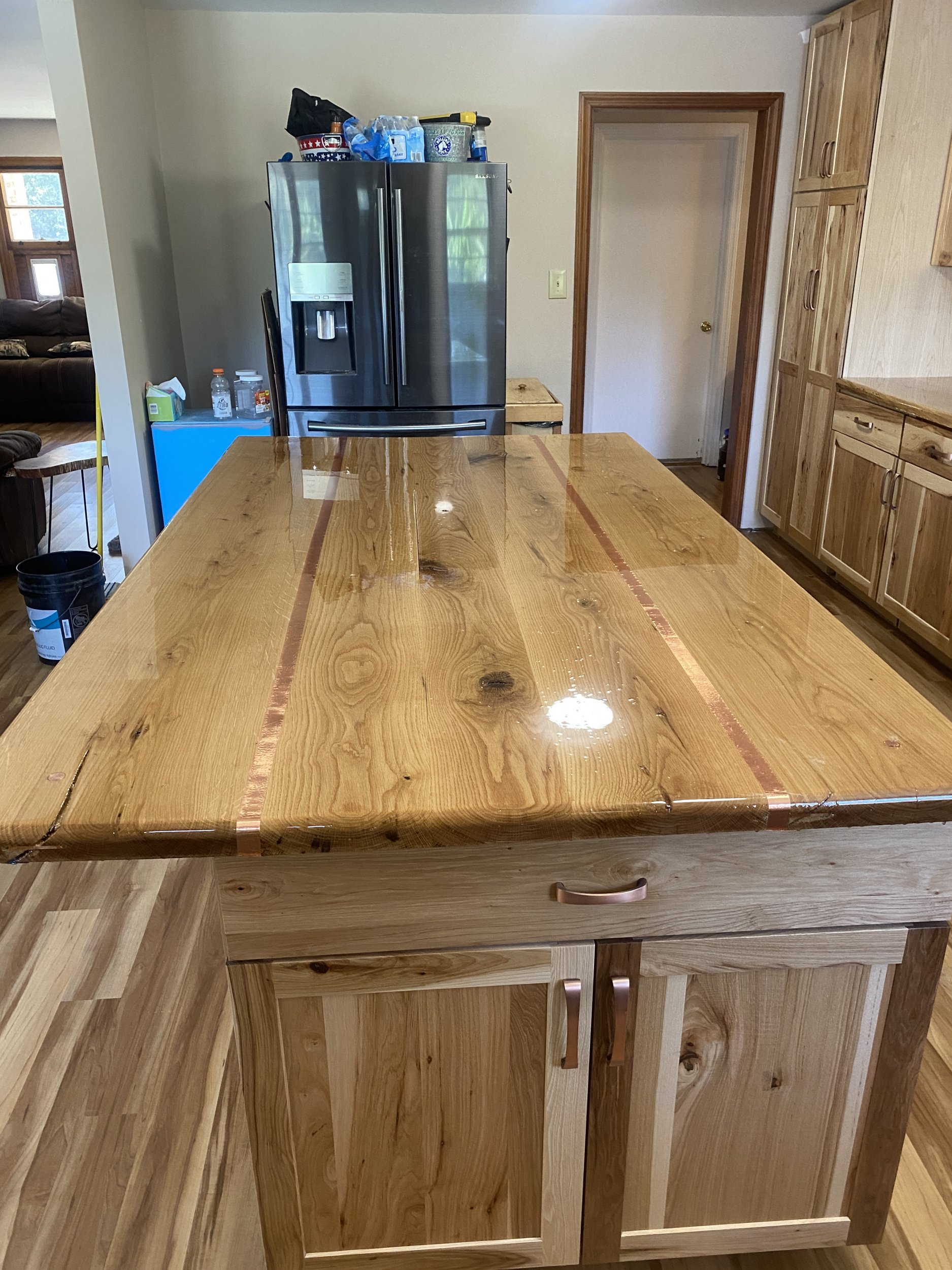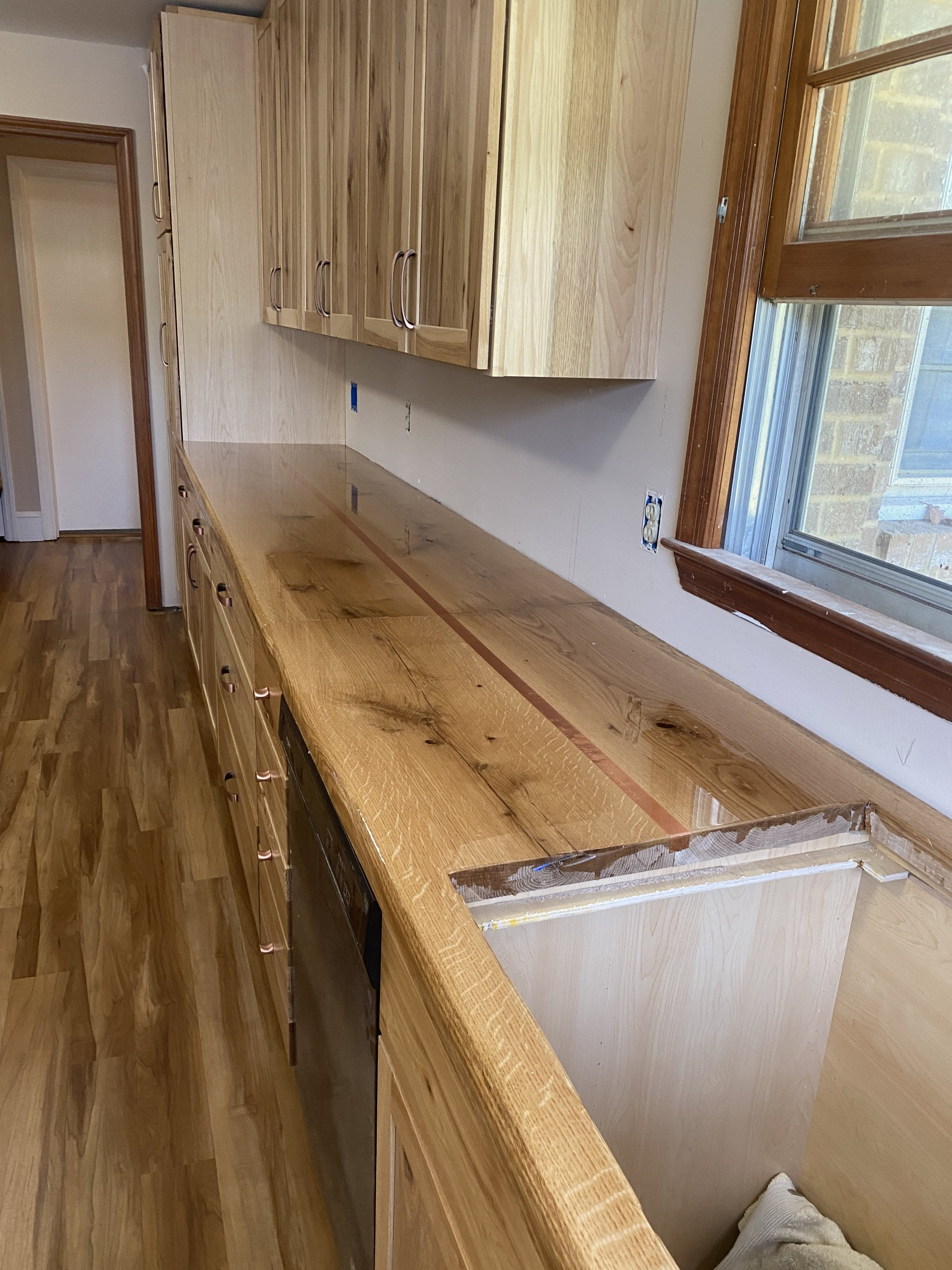 A little update on the oak countertops in my kitchen, started on these about 3 years ago when I cut the trees down and milled the slabs..