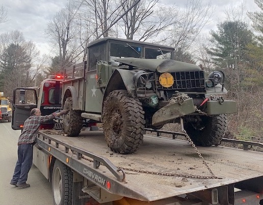 Since buying him, I'm upgraded the brakes, added a brake controller and receiver hitch (but kept the original pintle hitch), swapped in a rebuilt engine, and had the transmission and transfer case rebuilt. I finally had him running like a top. I was down to considering the little things, like fixing seals around the windsheild which had rotted away to nothing and were letting in the rain and cold air. ... Until several weeks ago, when he got in a little argument with a telephone pole: