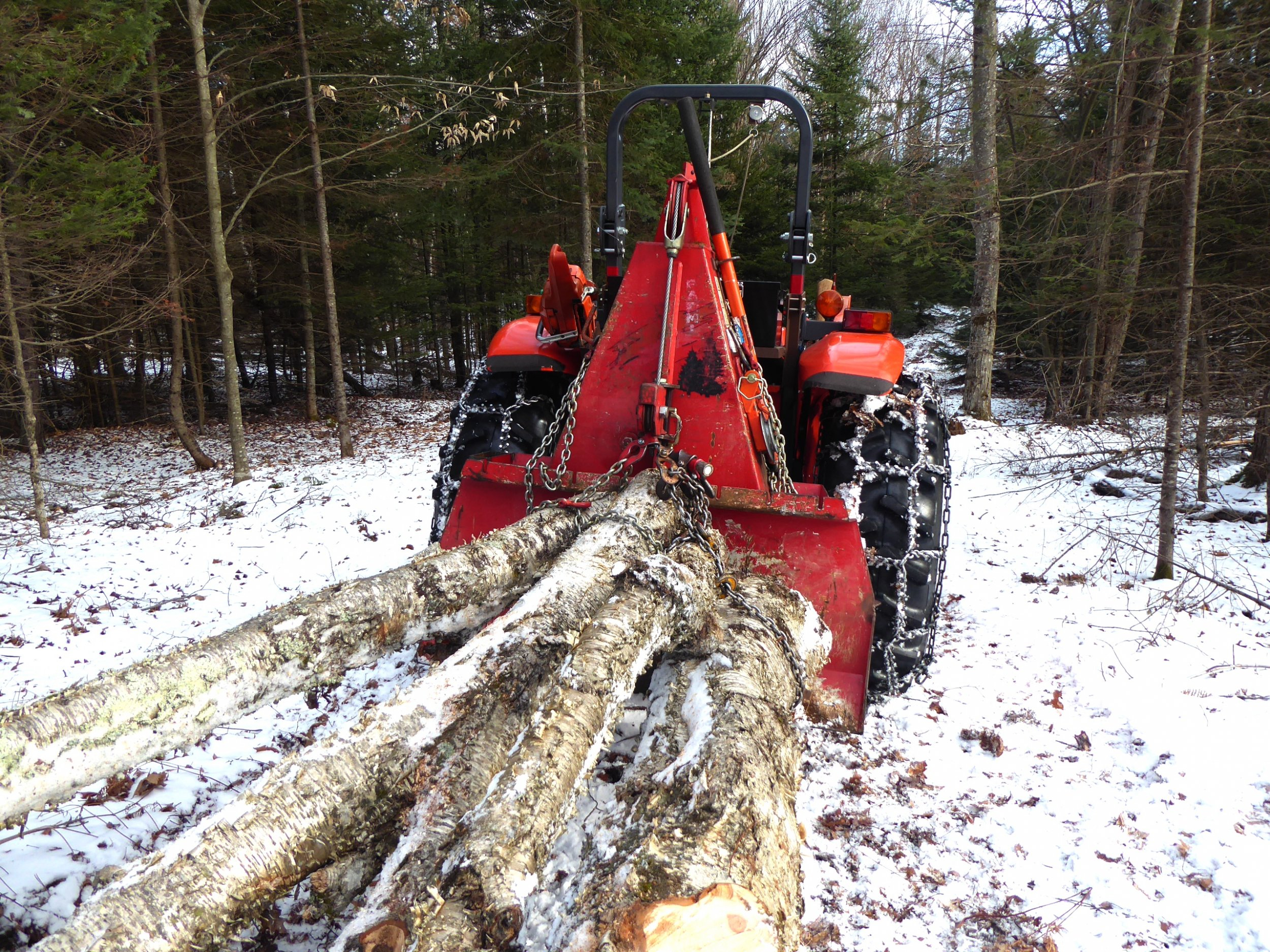 What the other guys said and most important to me is it allows you to control how the hitch bunches together. You don't have a lot of leeway with a winch. You need to get the hitch snugged up to the tractor in order to lift it. I don't think you could do that with cable chokers on a tractor winch ????Just I quick question why do you guys use choker chains instead of cable chokers?