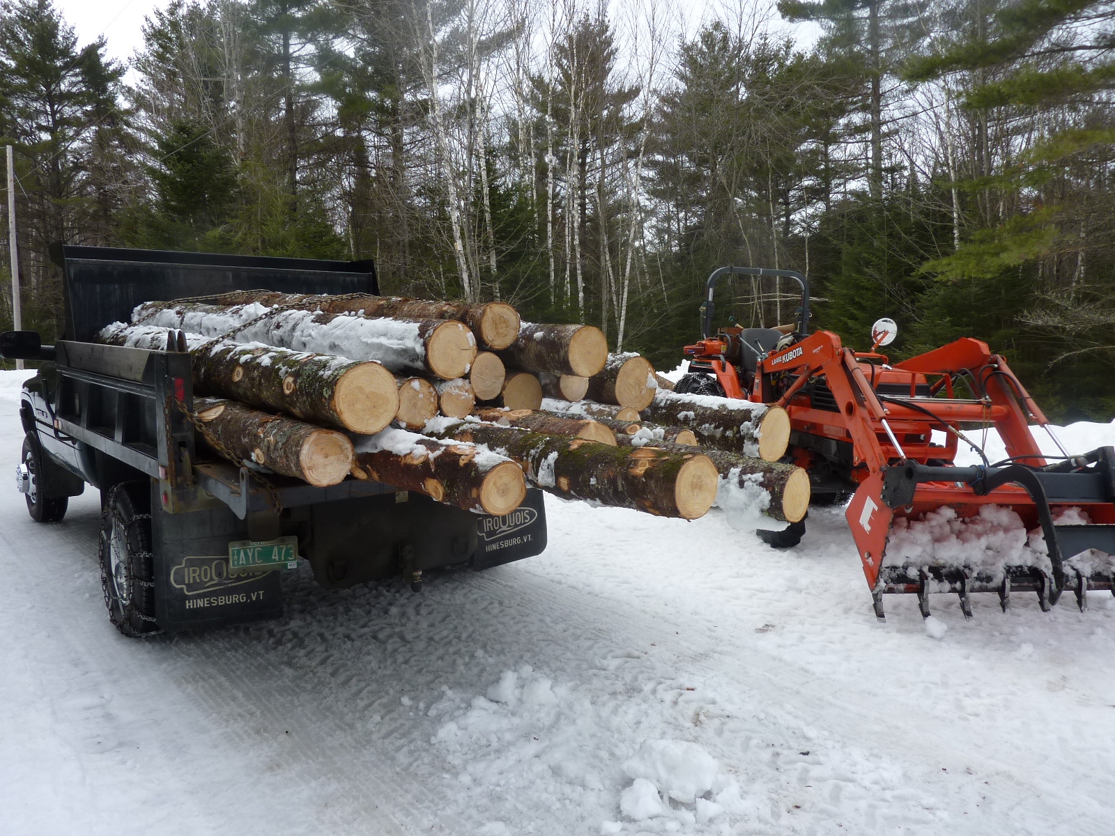 This morning was probably my last trip to the saw mill for a while. We have plenty of snow and ice but it is 50* this afternoon and the roads and trails are falling apart fast. Nothing but warm weather forecast for the next 10 days with a big rain this weekend. So unless winter comes back I am done until the end of mud season.