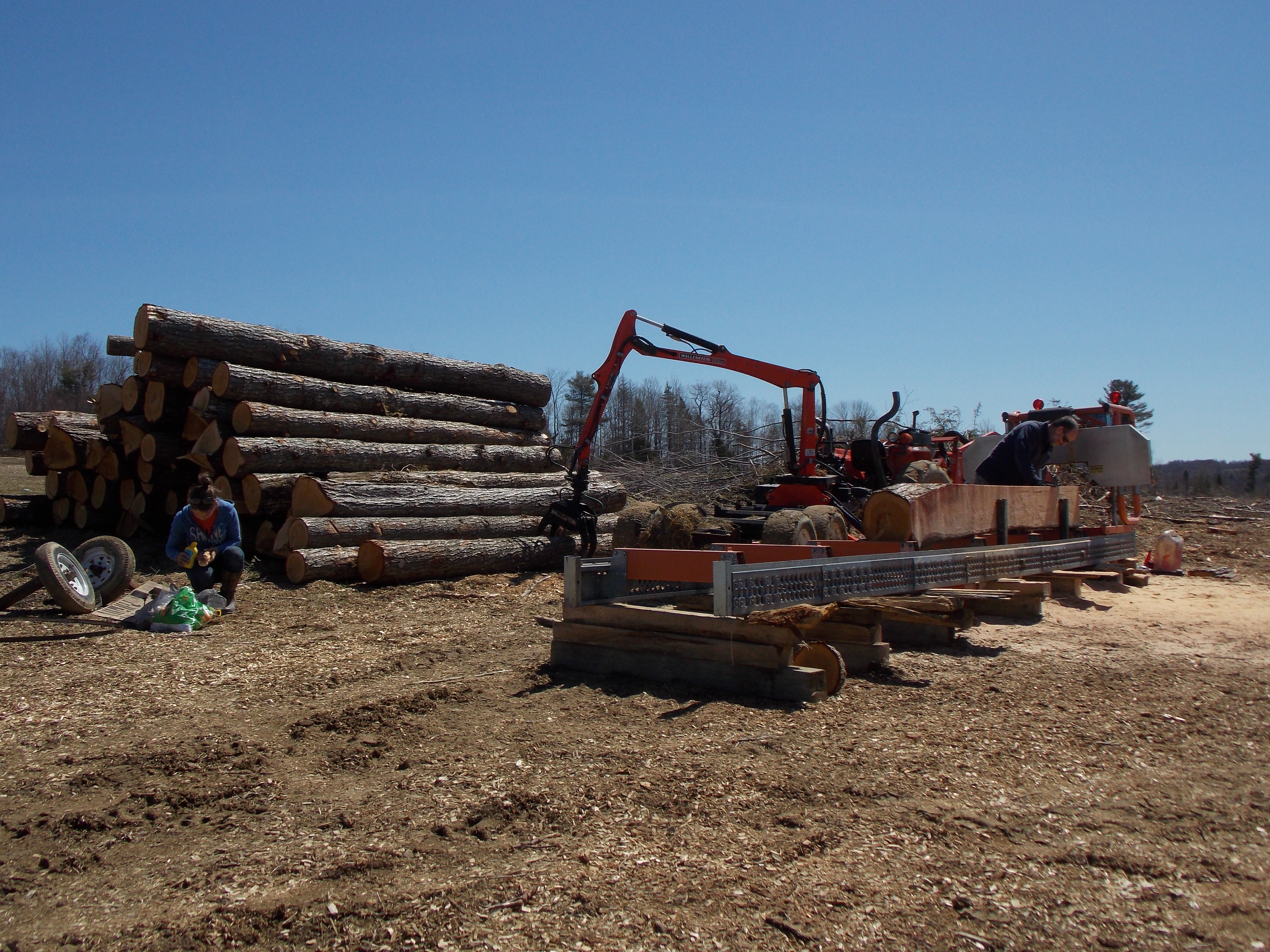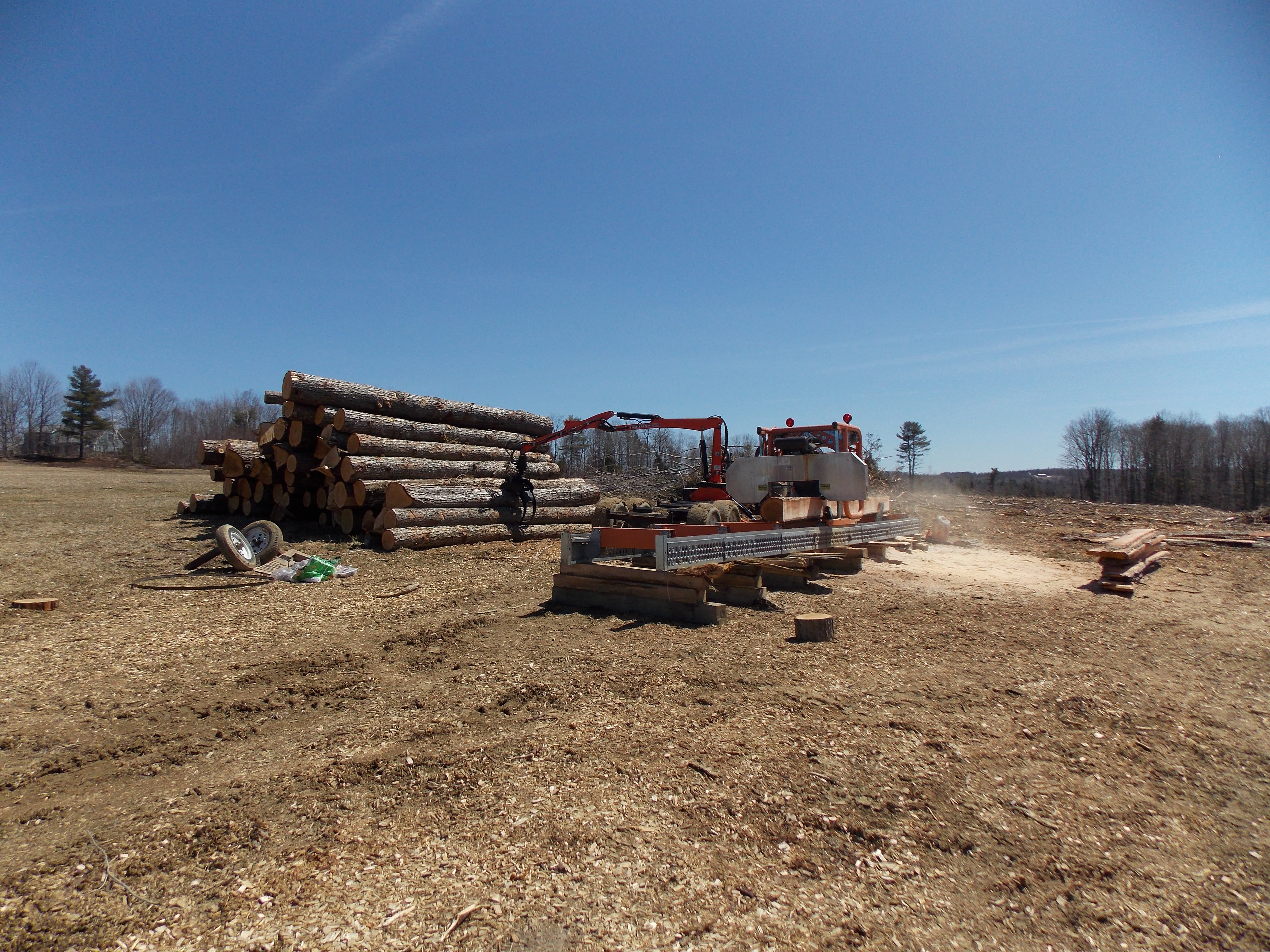 That's a very nice gesture. You guys have big heart.We know some people from church who lamented that they would "never be able to build their house", so Katie and I talked it over, and decided God has blessed us with enough wood and that we could give them some so they could have some lumber to build with. He came over the other day and set up his Norwood sawmill, so I have been parking my tractor beside the mill and the log pile and loading the logs onto the mill for him.