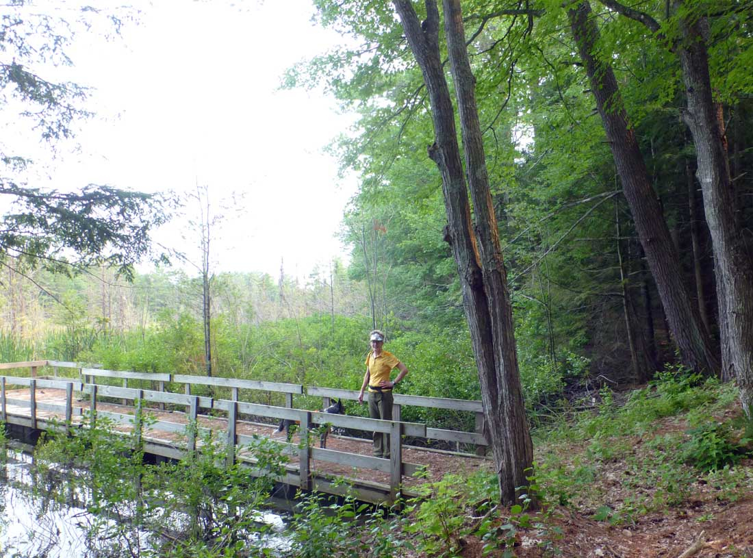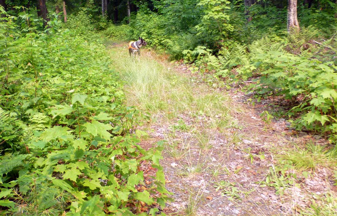 Here is another trail we do, I forgot to mention. Its hot here so we did a little hike around its 3.25 miles today. 1/3 of it is single track and the remaining is logging roads. They need to be mowed! Thus the tow behind flail I posted about earlier. The single track runs along the Pilgram river which I got NO photos of.