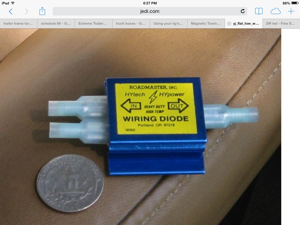 3) Lurking around Pirate4x4 I saw where someone had run wiring so that when they had a vehicle on their trailer they could plug the towed vehicle into the trailer wiring harness and the run the brake and turn lights via the vehicle doing the towing. I would love to do this with my tractor. I believe the individual who did this used diodes (purchased from and RV) to prevent issues with current going the wrong direction. It seem like a pretty simple mod - is there anything I am missing?