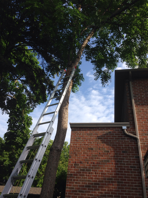 Also, CobyRupert, don't worry, I will NOT be on the ladder when the hinge breaks and the fork starts to fall. I have done this in the past, and believe me, when it comes down it takes me and and another person reefing on it HARD! I just don't cut close enough to the birds mouth that the tree will fall on its own. also, the ladder will be tied, and the chain or a big strap will wrap around the tree above the cut so that barber chairing will not be a problem.