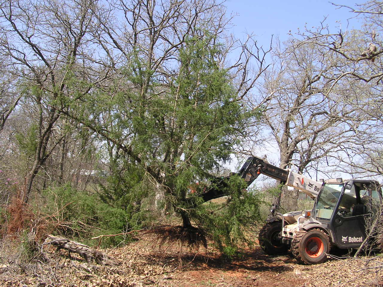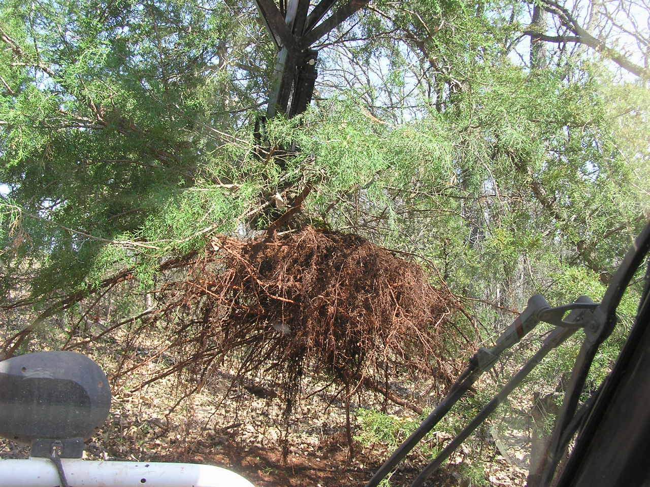 Pulling an oddball two trunk cedar tree.