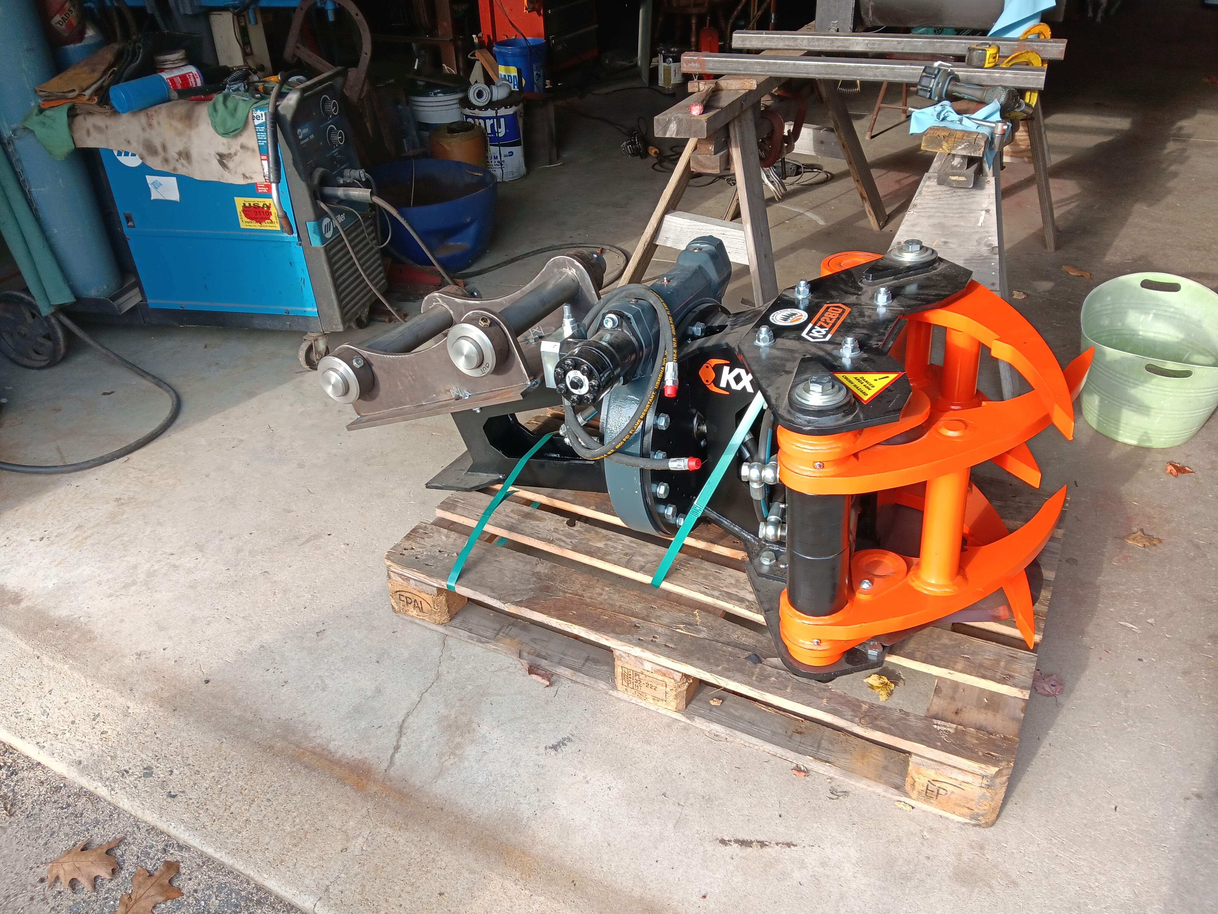 The below is a TMK 200. I might be limited to a TMK 150 with my smaller machine, and probably couldn't justify the tiltrotator or collector, just the shear itself. There are also other brands, like KX 210 (not Kubota in spite of the model number). It ought to be a time saver, and I think also better in terms of safety. I try to be careful, but chainsaw felling even 5-6" trees in a wooded area does carry risks, and pushing/pulling with the excavator bucket can tip things towards the cab rather than away all too easily. So snipping smaller trees and larger bushes with a shear and laying them down in controlled fashion has clear advantages.
