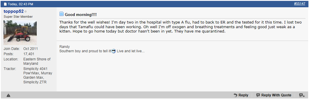An example is post number 55148 under the Good Morning thread.