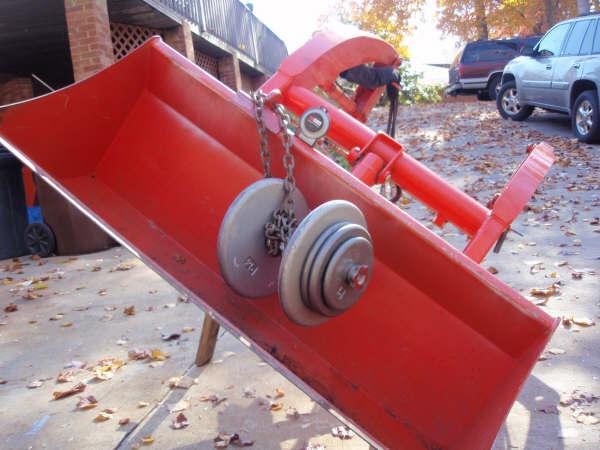 Also included is a picture of something I welded up for the 3 pt. hitch with scrap steel, but it isn't nearly as useful as the insert on the bucket. For me, it's easier on my neck to see what I'm doing in front of me rather than behind me.