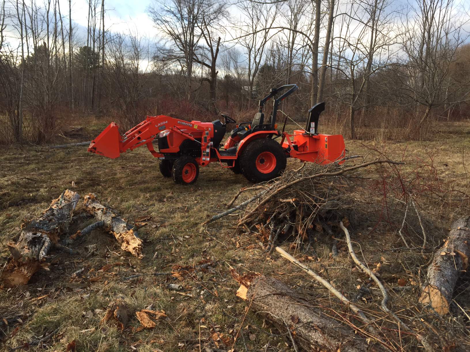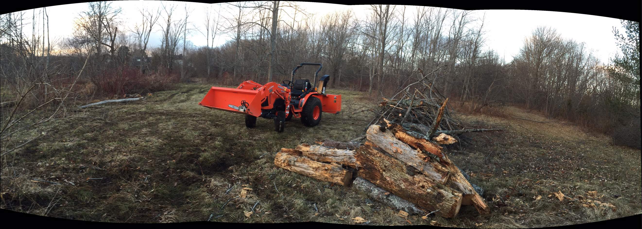 But yes the tractor is great... knocking down old dead trees, pushing and piling... lots of easy fun clearing to do up there and then snow before long to move etc....