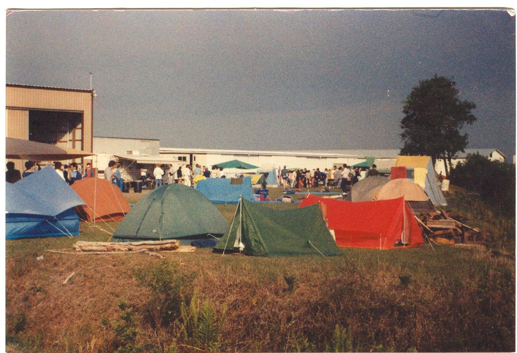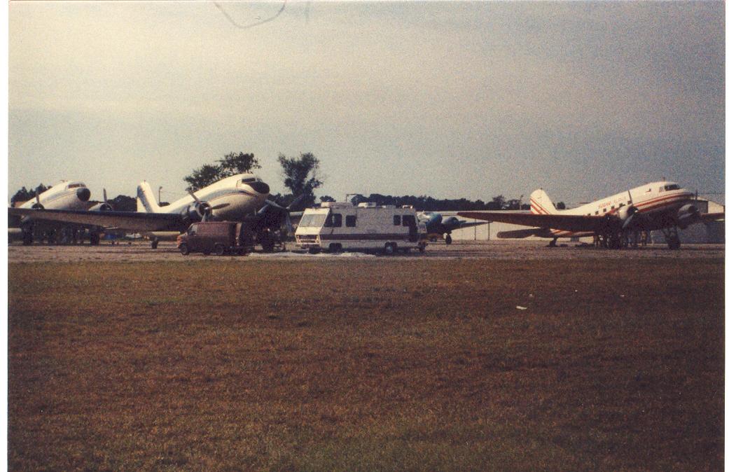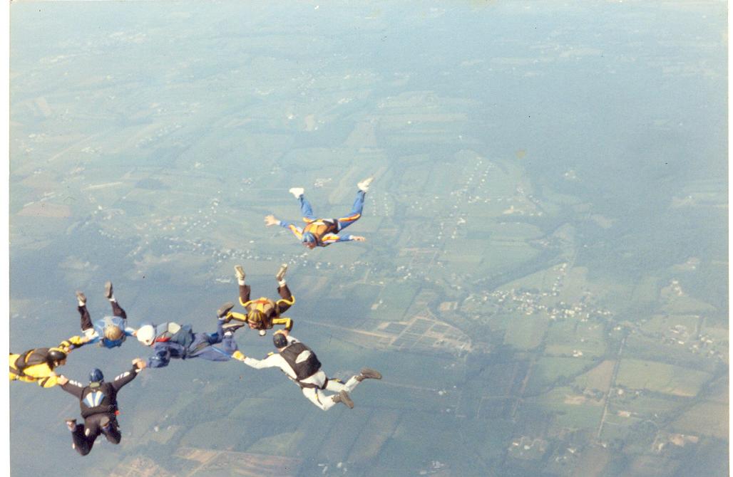 Attached is your truely (blue jump suit, brown rig) approaching & docking on a 9-way over New Hanover, Pa in 1992 (first jump in 2 years due to an unrelated injury). Third pic was the flight line at DeLand, Fla., 1985 (my first trip there). Last is "bag-land" DeLand 1985.