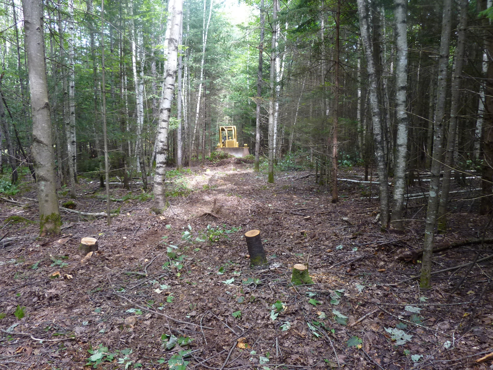 Then I just started using the roads with the tractor if I could. ( I had boulders, holes, skidder ruts, and steep side hill slopes to deal with also which stopped the tractor ). After a few years all those little stumps just sort of disappeared or got pulled up skidding logs over them with the tractor. I ended up with trails like this