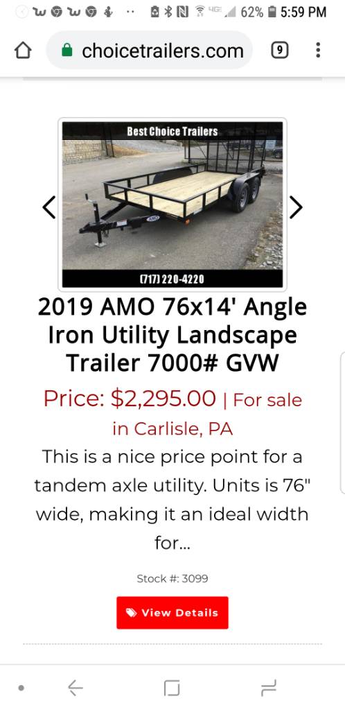 I'm shopping 7K gross tandem 6.5 and 7 for wide by 14 and 16 foot long utility trailers.
