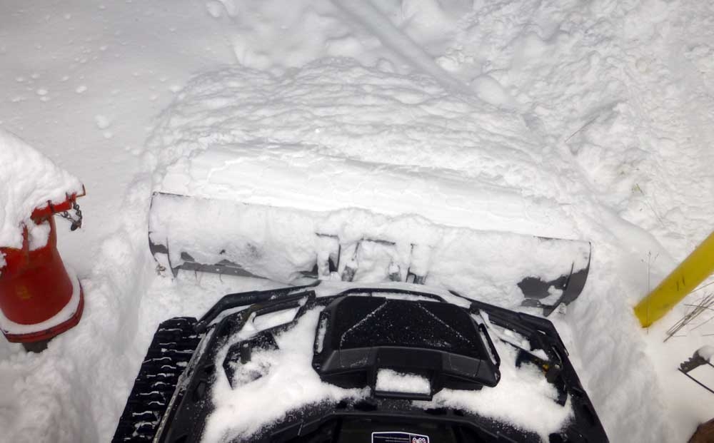No new snow here but the neighbor girls (Mi tech students who are away) snow came off their roof and filled two of there parking spots. No problem with pods and 85hp to spin them. Its been warm here for days and this snow was full of rain water.