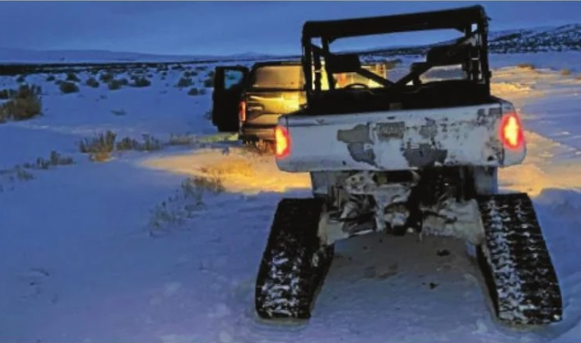 You'd think they would have a cab.Not my rig and not my photo...but this is a shot of one of the tracked UTVs used by the Elko County, Nevada Search and Rescue Unit to rescue people stuck in snow drifts in the back country. They had to use it 5 times in February alone, according to the news article.