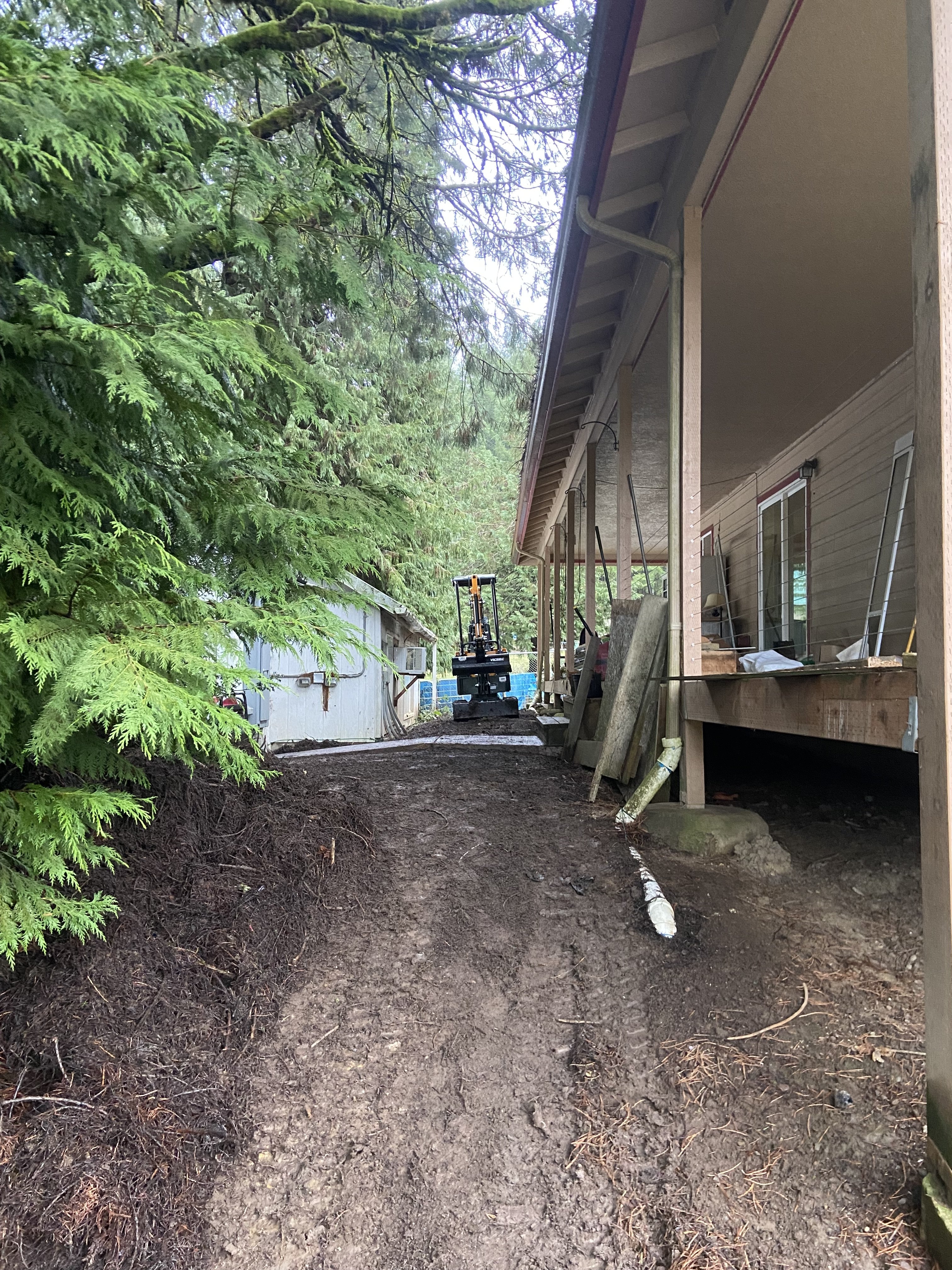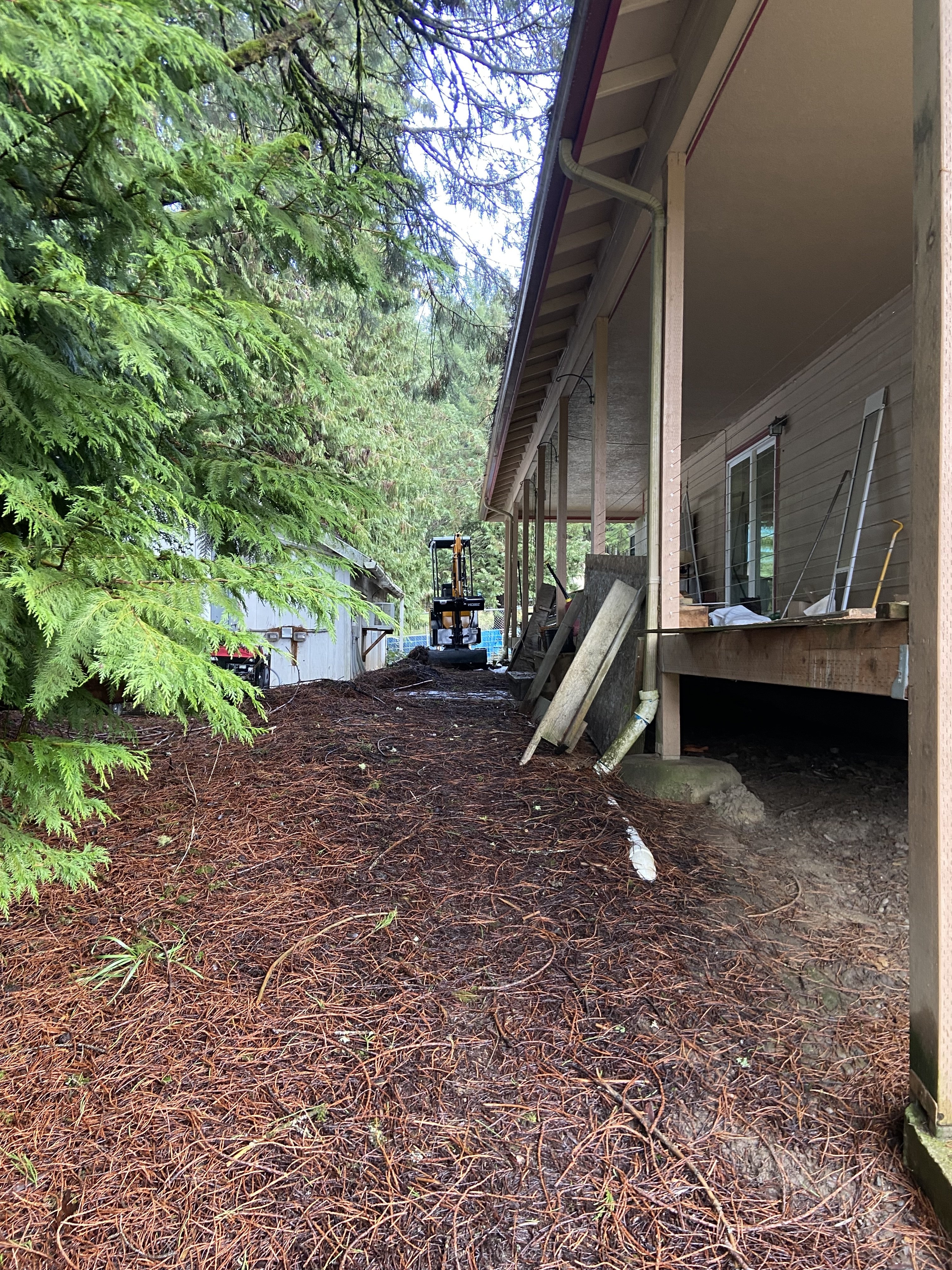 For my mini’s first feat, I cleaned up the sequoia and cedar needles that fall between my house and adjacent cottage. You can see there isn’t much clearance, but I was able to get everything pushed into a pile. I did manually rake along the cottage, but that was nothing compared to the amount of sweat and cursing that were usually involved by doing this all by hand each year.