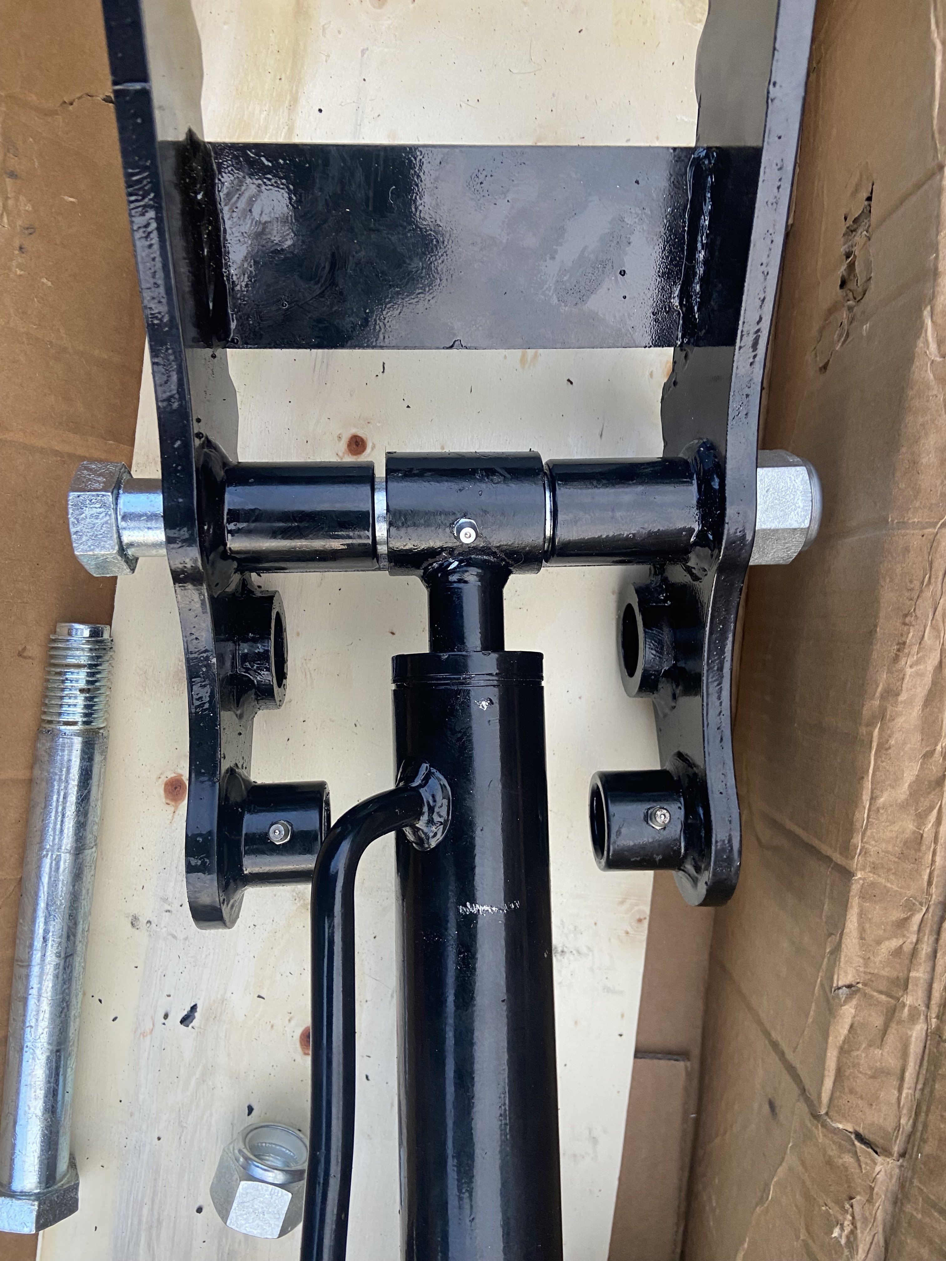 After I got everything mounted and plumbed on the machine, the new thumb worked perfectly… well, almost. While testing it, I noticed that the pivot pin rotated along with the thumb, so the new pivot point grease fittings are inadequate/ineffective. I will probably just go ahead and install one on the stick mount point where the pin does rotate, but I feel a little silly for failing to predict this outcome.