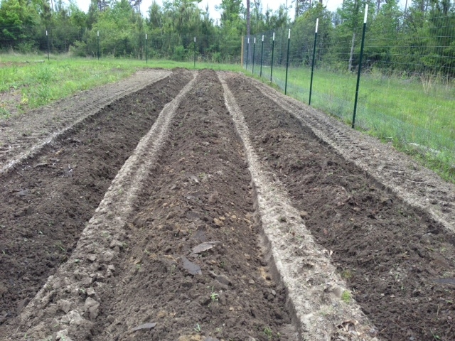 Two hiller discs to toss up soil, a coulter disc down the center to offset (some) of the steering torque from the hiller disc and a gauge wheel (cause it seemed like a good idea)