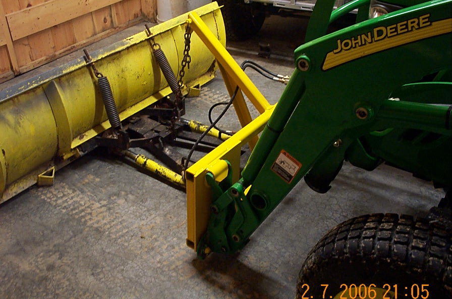 My two cents- my 3320 with 300CX has Turfs, rear chains, oil filled tires and concrete weight block that I made-figure its in the 500/600 pd range. OH- and I made a quick change front mt that hasan old 6.5 ft Meyers with a power angler. Personal opinion but I would take the added weight of the ballast block vs a back blade. To pull snow away from doors I simply back blade with the plow in the straight position.