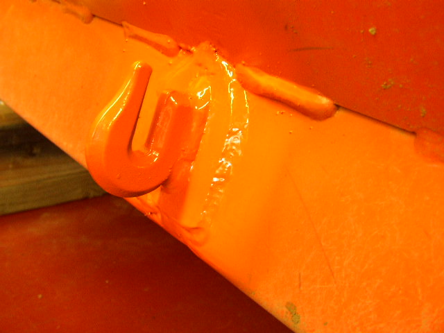 Here it goes, cut out some backup plates, welded on the hooks and sanded off the bucket paint....