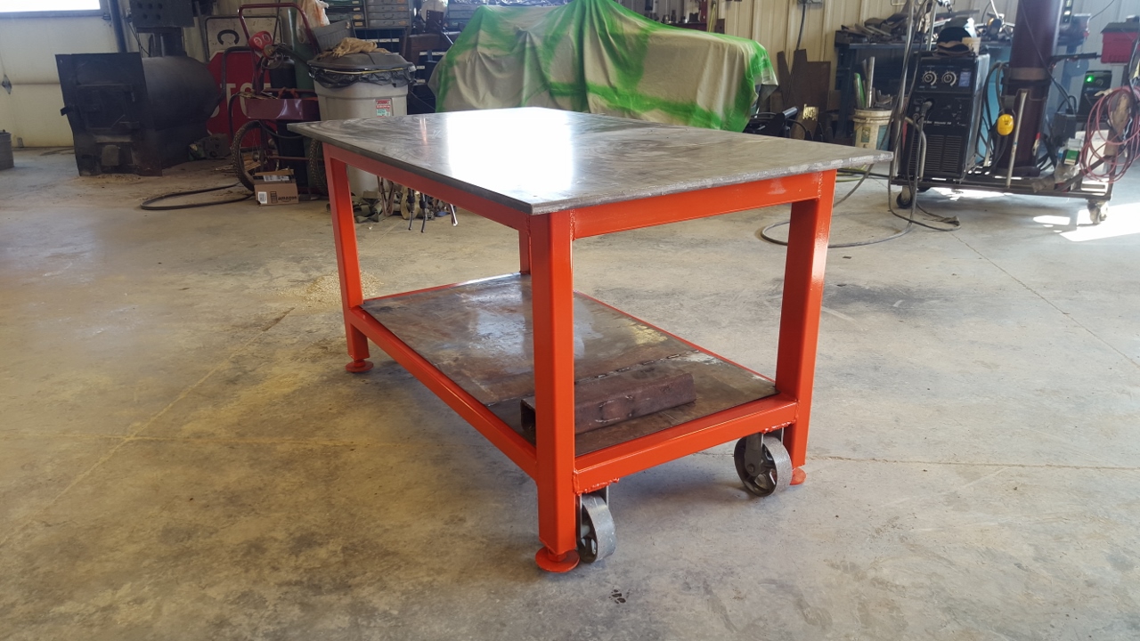 So, there she is guys. I expect this to work much better than the shop floor. I like the ability to easily move it so it's not killing floor space in the middle of the shop all the time. The casters work very, very well. Even after it's loaded with scrap steel I still expect it to easily be pushed around. I can move it with one hand now. :cool: