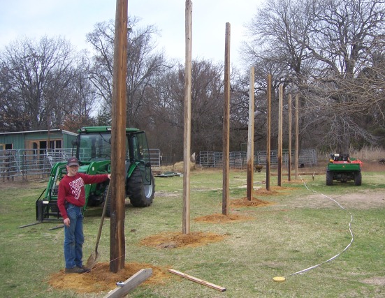 After a delay ... we managed late this afternoon to get the batter bds and lines up. First thing a.m. after chores we will dig the holes and set the poles.
