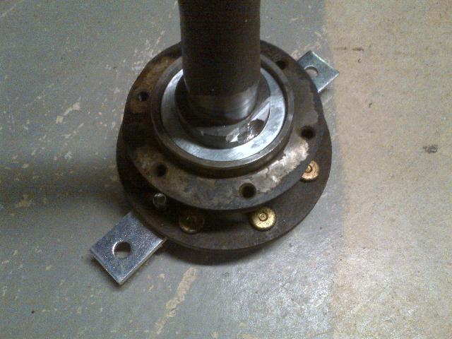 Started making a sheet metal (0.030") bearing shield today at lunch. Figured it'd hold up better than the cardboard one, especially if I need to put the heat gun to the collar. Just need to finish up the ID with the die grinder.