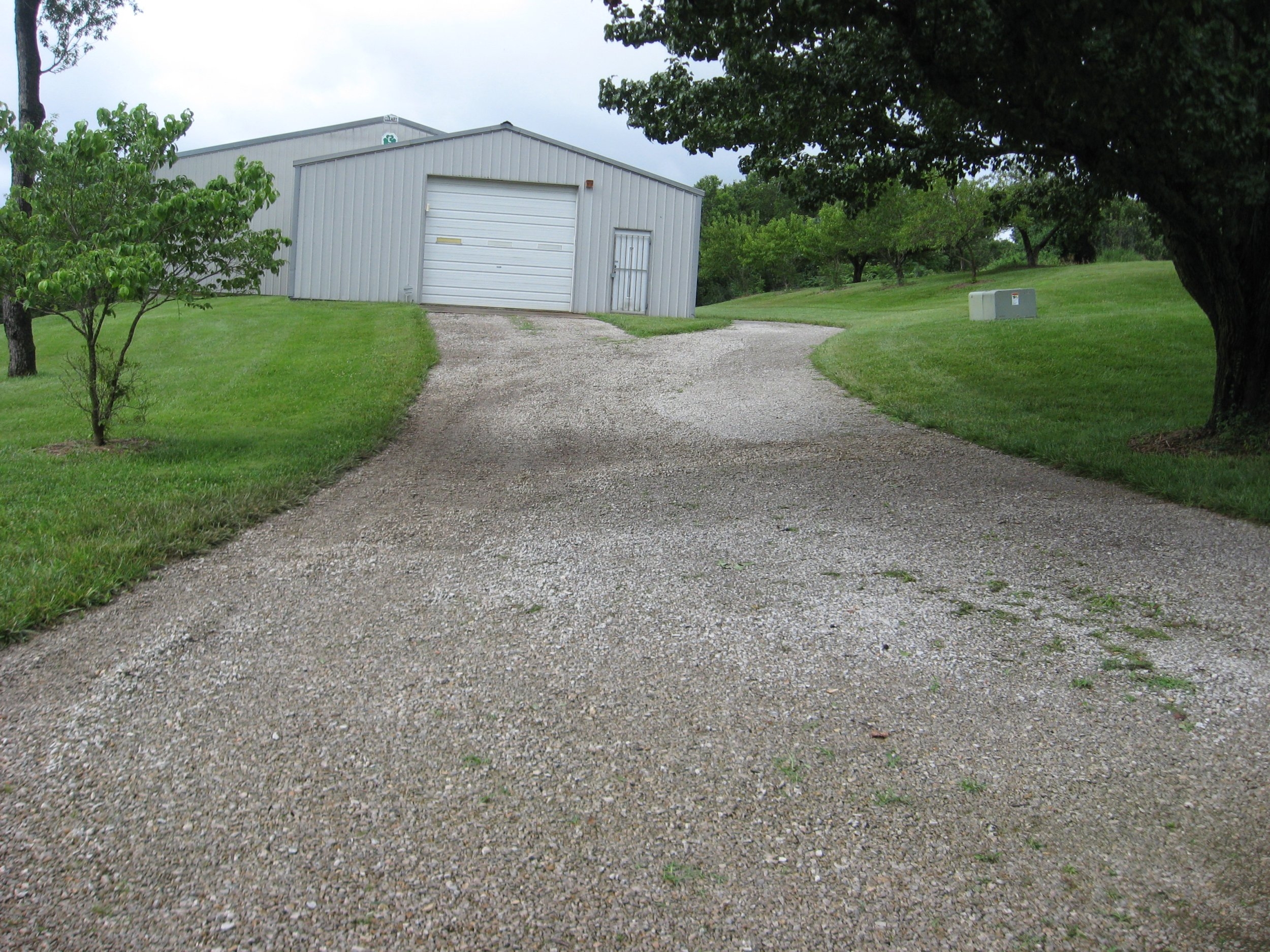Just finished fixing the drive again. This time was worse because the gravel was already loose from last time. Last time I just used a grass rake and shovel. This time got out the 2520 with bucket. Box blade would have been better, but too much trouble to get out for this small of project. Just raked the gravel out of the grass and back-dragged into position with the bucket, then smoothed out and blended with rake.