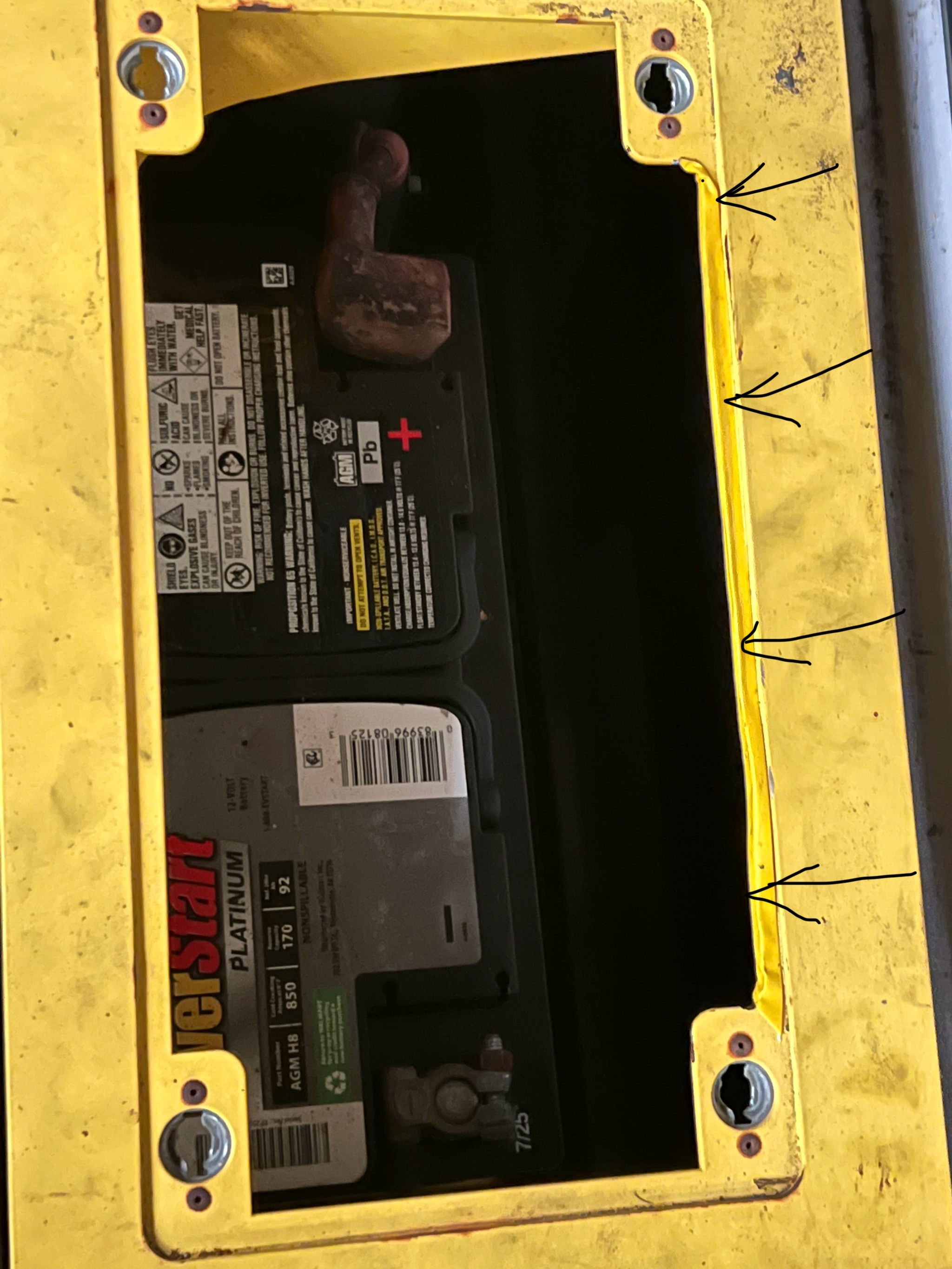 While removing the old battery, the nut that holds the battery down was one of those cheap “stay nuts” and it rusted off. Fell into the “abyss”. So I had to use a nut & bolt. Had to use locking vice grips on nut and socket wrench with extender while somehow keeping the plastic battery retaining wedge from falling off…. sheesh.
