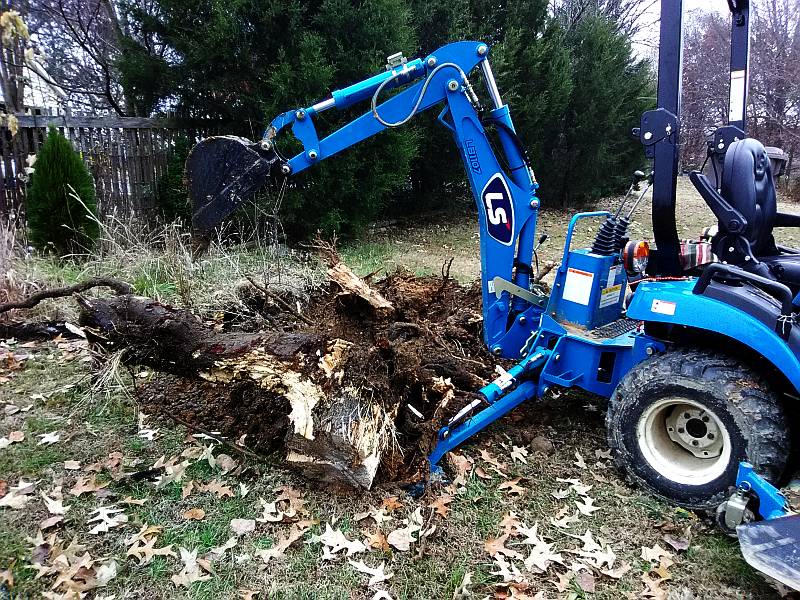 Drug this ginormous stump out to rebuild the shooting range. It took one 40-hp LS tractor and one 1998 Dodge Cummins to get it up to flat ground and the truck took it to the burn pit.
