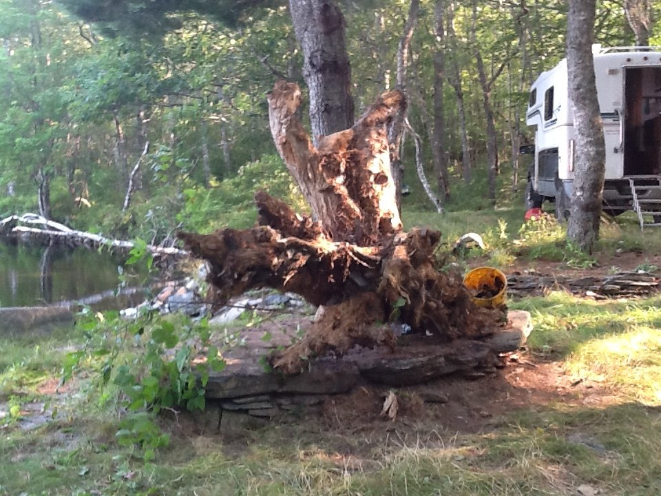 I have a growing problem with beaver making swiss cheese of my creek banks with bank den burrowing. The dens often collapse into a sink hole after spring thaws. Perfect spot for a 2 foot diameter stump like yours and/or random beaver dam spoil pile material.So I took out a 12 inch stump the other day and with its roots, that's over two feet in diameter. Moved it to the fire pit but it's taking longer than expected to burn (it's been dead and cut down a few years ago). What do you do with your removed stumps?