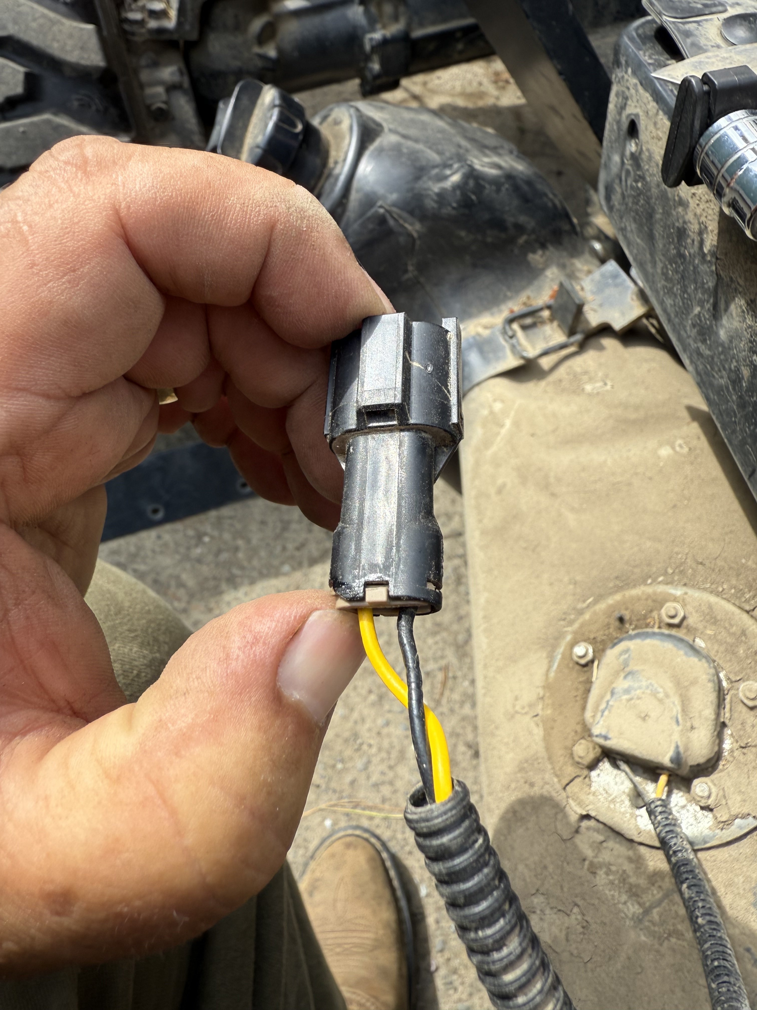 Repaired the wire for my fuel gauge sending unit. Was clearing out berry briars and noticed I was "out of fuel" so I went to my tank and filed her to the top... gauge still reading E. Turns out one of the briars must have worked its way up and over the fuel tank and pulled one of the wired right out of the connector! 😤