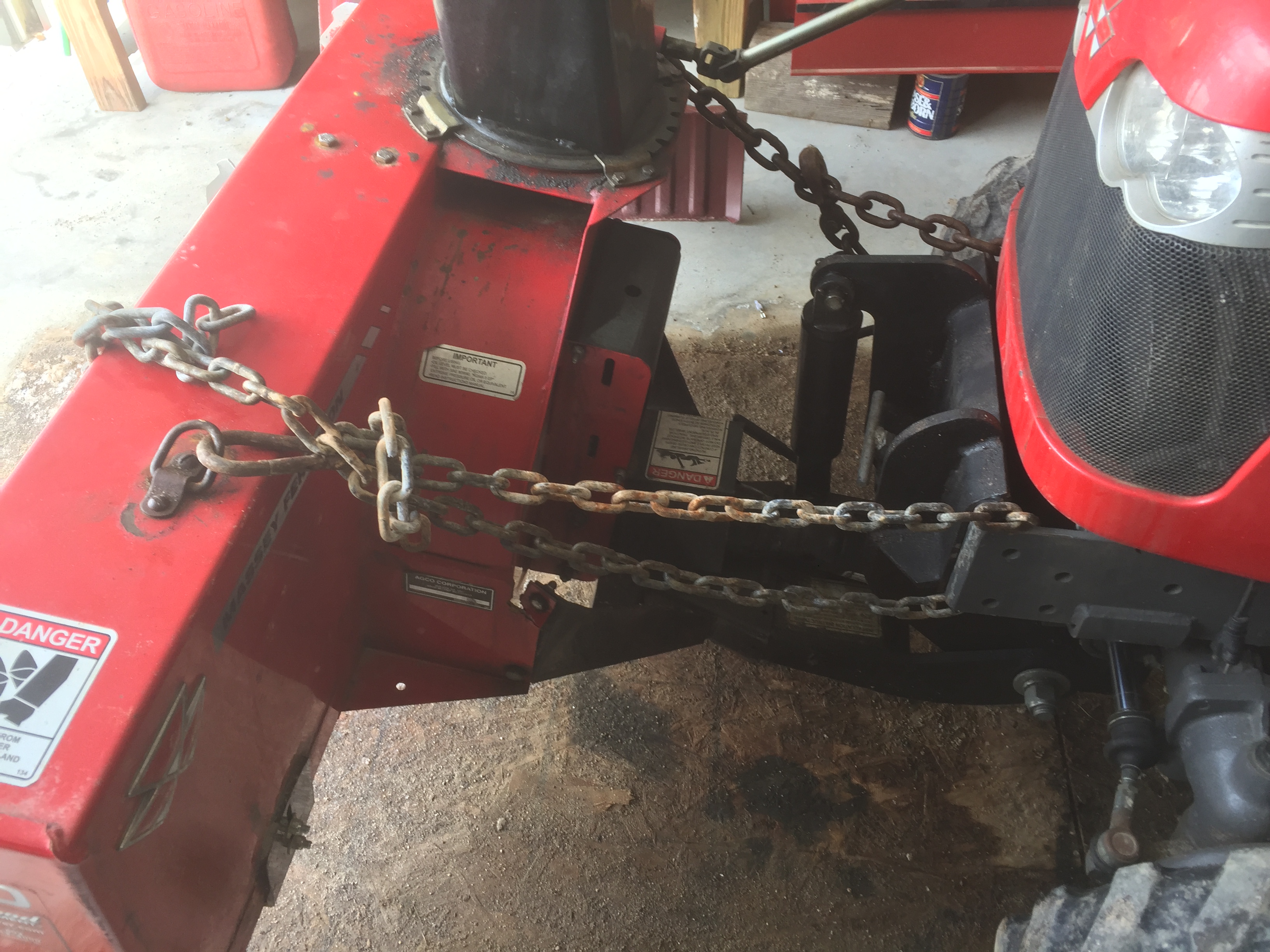 Luckily I had some tow chains on me to hold up to prevent further damage. I ran the blower and now I hear a clanging. Ugh, the shaft in the QC likely bent.