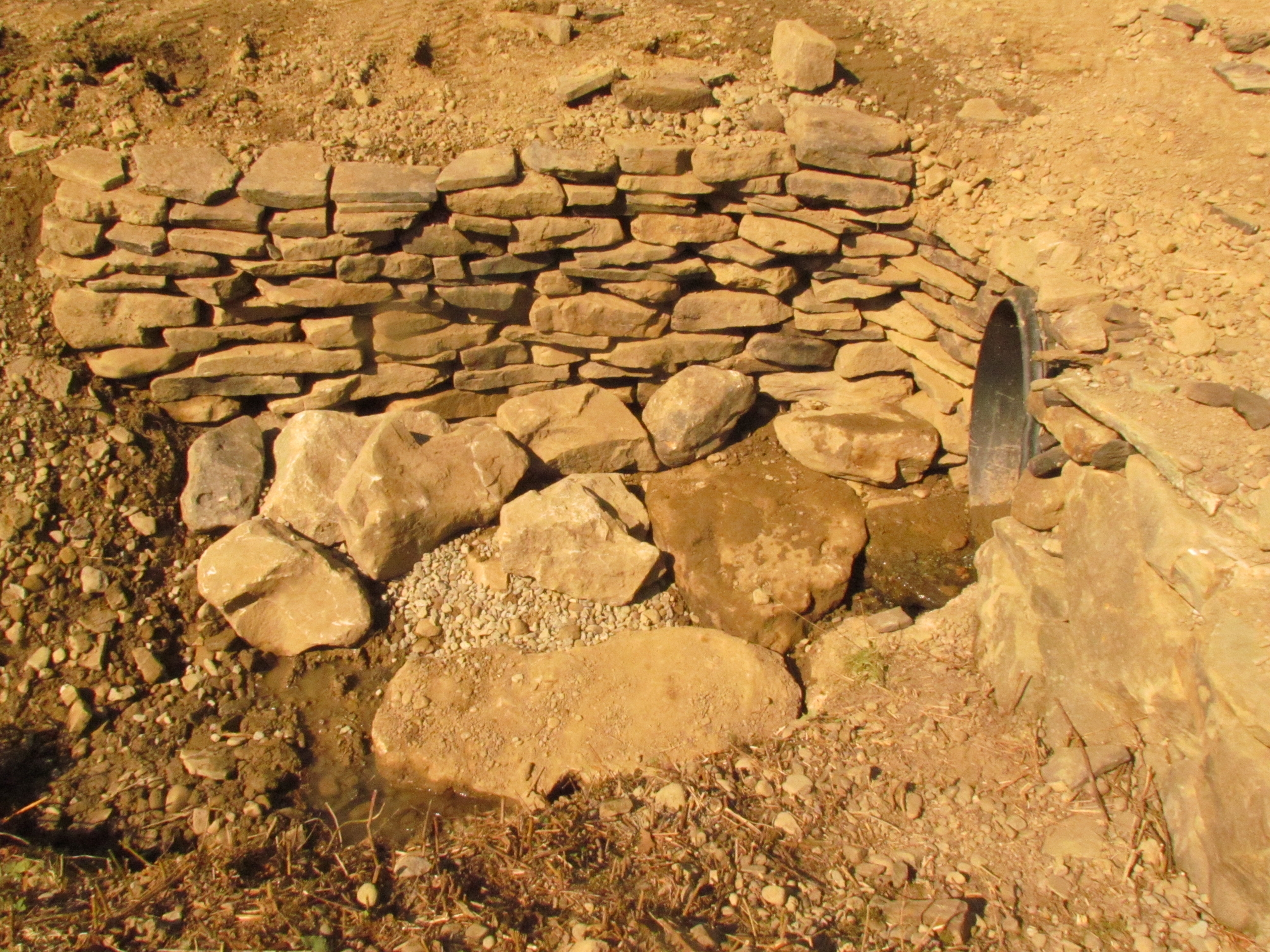 Now all my hard work building a pretty wall is hidden behind lots of rocks and bank run fill. But hopefully it will hold!