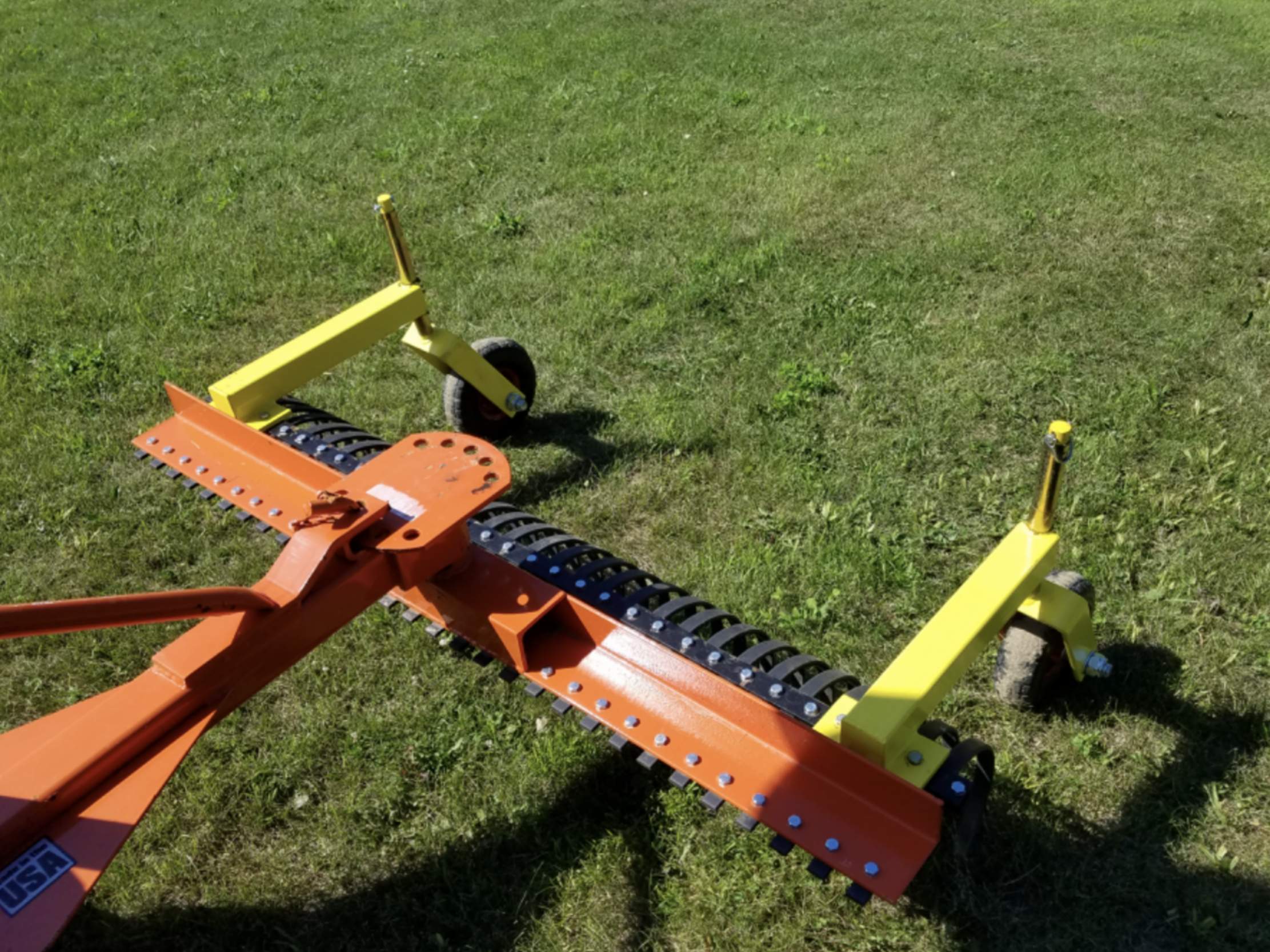 Nice attachment, I have been thinking about selling my Woods brush hog and purchasing a landscape rake, let us know how the wheels work out for you.