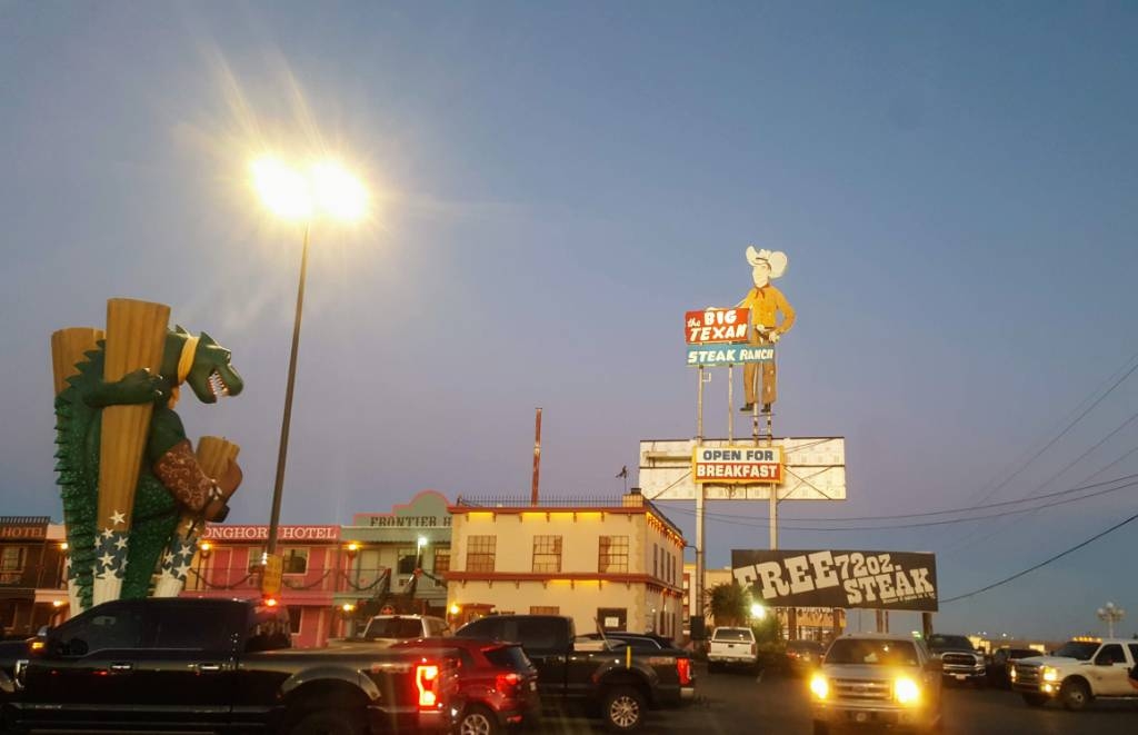 When I drove truck back in the mid 70s, we used to stop there when we went through Amarillo on the way to CA. They had a pen out back with a buffalo in it. A wall had the signatures of people who had eaten the 72 oz. steak meal. I tried to get my driver/BIL to try it, but he didn't think he could.