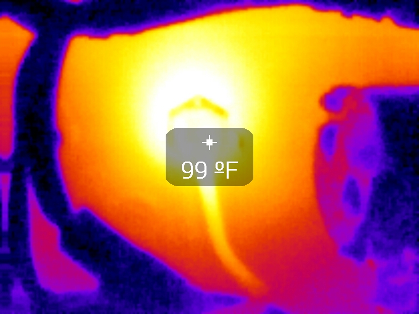 Note, my garage is not insulated. I think the temps printed on the thermal images are a little high, maybe by 10-15 degrees, but you get the idea.