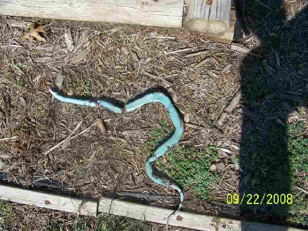 Thanks. You guys are fast. The second link leaves no doubt. I thought it was too fat to be a garter snake. But the link posted above shows one that had eaten a frog and has a lump in the mid section. And there have been a lot of small toads around this area this year.