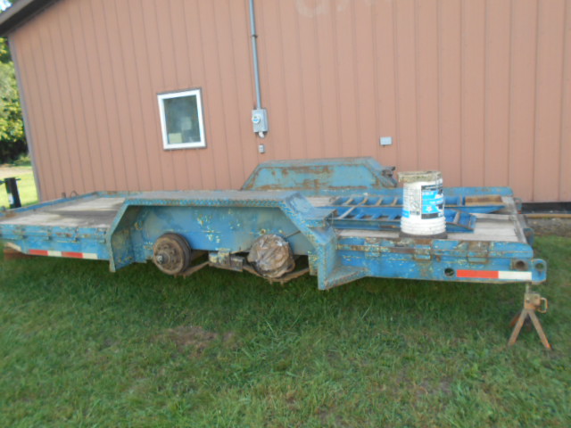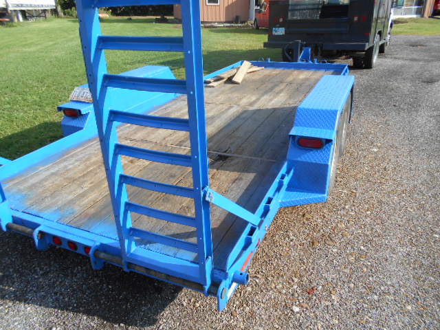 I haven been looking some time to up date my trailer 12gvw 16' to the next size larger in length and weight 18' 14gvw. Good used trailers are very hard to find and usually if you get a good one, you are within $500 of a new one. This one caught my eye. Not all beat up, Owner said it needed brakes, and some lights replaced and due for a paint job. He owned it for 5 years and said he bought it off a farmer and no title and did not know who the mfg. was. I went and looked at it. It is very well made, welds are a work of art, I would say it is 15 years old, no rust on it.(little underneath fenders) original , fenders are 3\16" (never seen any that heavy) floor is worn but will last me the rest of my life because I keep my trailers inside. I made the deal and yes I will have within $500 of what I could have bought a new one for but not this quality and low deck height. I have looked at all kinds of trailers but have not seen any like this one that will tell me who made it. I will try and post a couple of pictures, pay close attention to the tail lights as I have never seen a trailer with lights mounted like that, and the deck. It is divided into about 4 1/2 ' sections. (just loosen the nuts on the under side, take the strap off and you can replace a board if broken) I replaced the brake shoes, gave it a farmers paint job. I even wire brushed up underneath the fenders, sprayed it with Rust Oilum paint and had some old two part Sherman Williams two part epoxy and hand painted them underneath. Would just like to find mfg. who made it. Only number I can find is stamped on tongue J.N.07270--