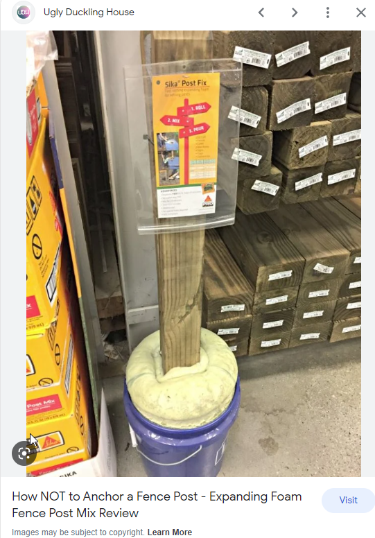 Yeah, polyurethane foam. Thats what I thought but I wanted to see what Learning2tractor responded with. That crap don't last since polyurethane breaks don't with moisture and UV and becomes brittle in about 2 years. Then someone taps your fence post and it falls over.