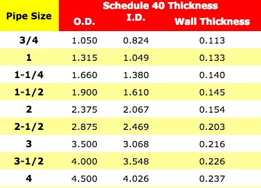 Edit: I didn't pay close attention to your chart but you are correct in the OD sizing. My original post was concerning the statement that schedule 40 was one OD while Schedule 80 was larger which is not correct. The OD on both schedules of piping is the same regardless of thickness. Tubing OD changes with the schedule thickness so that the ID remains the same. PIPING OD doesn't change regardless of schedule thickness until it reaches 14" nominal pipe size when the ID remains the same just like tubing.