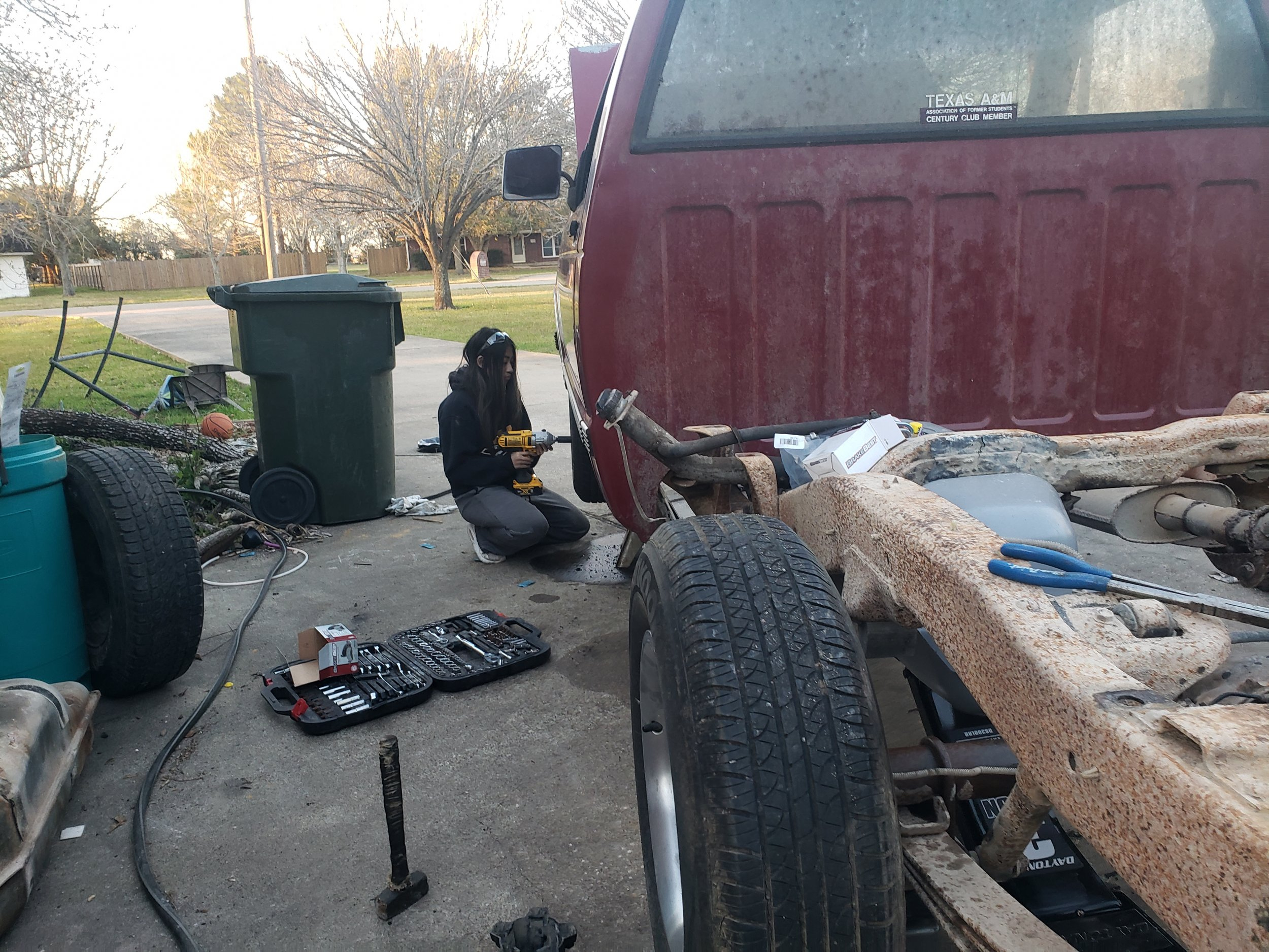 She has really surprised me. This isn't the truck she wanted (she wanted a big lifted one) but I had prepared her for an even bigger disappointment; something like a 15 y/o Ford focus or a Toyota corolla. Since It's at least a truck she digs it. She's never been interested in what I do out in the workshop and I haven't seen her this eager to do anything resembling work before. She's done as much work on it as I have, been right there by my side whole time. I was expecting she would wash it, vacuum the interior, and then pester me about when it's going to be ready. But no, she actually mentioned considering this as a trade.