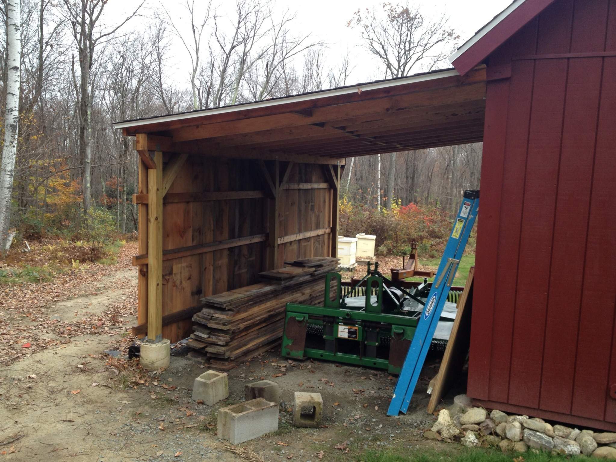 I added a lean to on my shop similar to this one but completely enclosed with a 12 foot garage door with opener. Actually started it in Dec. 2011 but finished it in 2012. I contracted the actual building of it and concrete work but I added lights(4) and receptacles (4)one of which is switched and only works with the lights on. This was mainly due to having some wire that would reach from the last light but not to any power point to tie it in so I just jumped it off the lights. Its useful for running saws etc when I am working in the shop and when I turn off the lights it is dead. I have 3 others that are live including one on the outside parking slab. I just finished putting up some shelving in it a few days ago that I had been needing for a while to store my fuel cans and fishing tackle boxes on. When I first built it, I put up one corner shelf in the back for storage that is 2 feet deep by 4 feet in each direction from the corner. It is high so need a step ladder to reach most anything on it which is why I put in the lower shelves to be more accessible at about chest high.I finished a12x16 shed with a shed roof around back. I also had a pond put in out behind my house.
