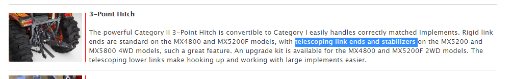 compatible implements they introduce their own idiosyncrasies with implement compatibility and PTO length compatibility. If you go with a QH you cannot use your telescopic Lower Links, they have to remain "in" for the QH to function.