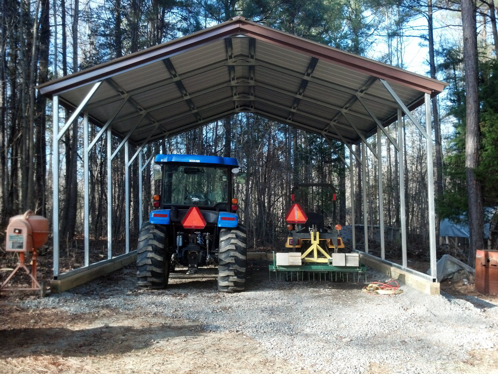 I put up a 18x21x9 Carolina carport almost a yr ago for my tractors. It was around $1300 plus the gravel I put in on. I'm in the process of enclosing it in now.