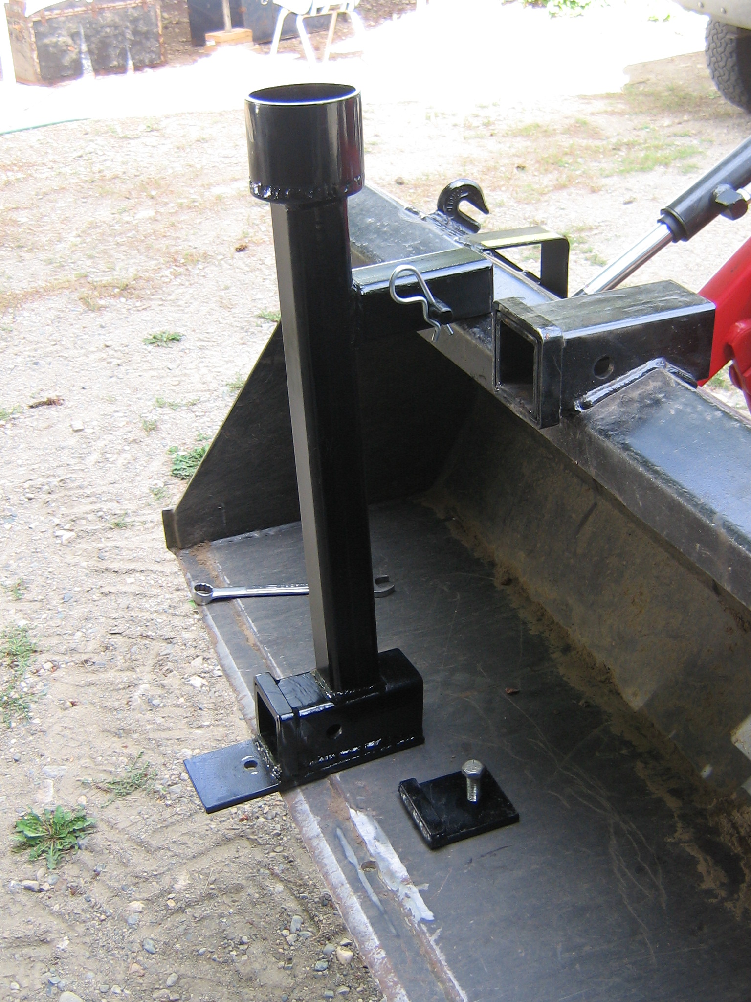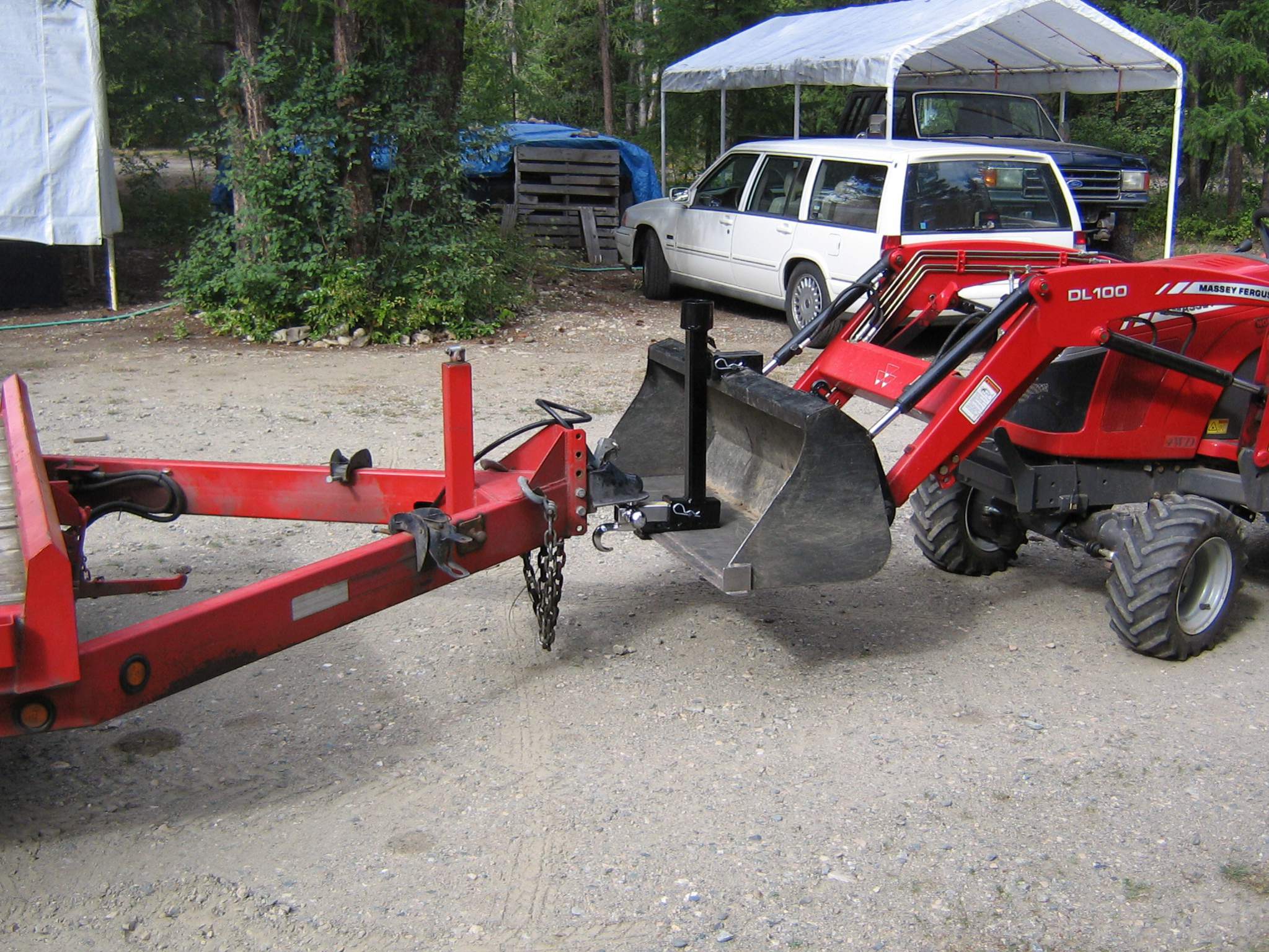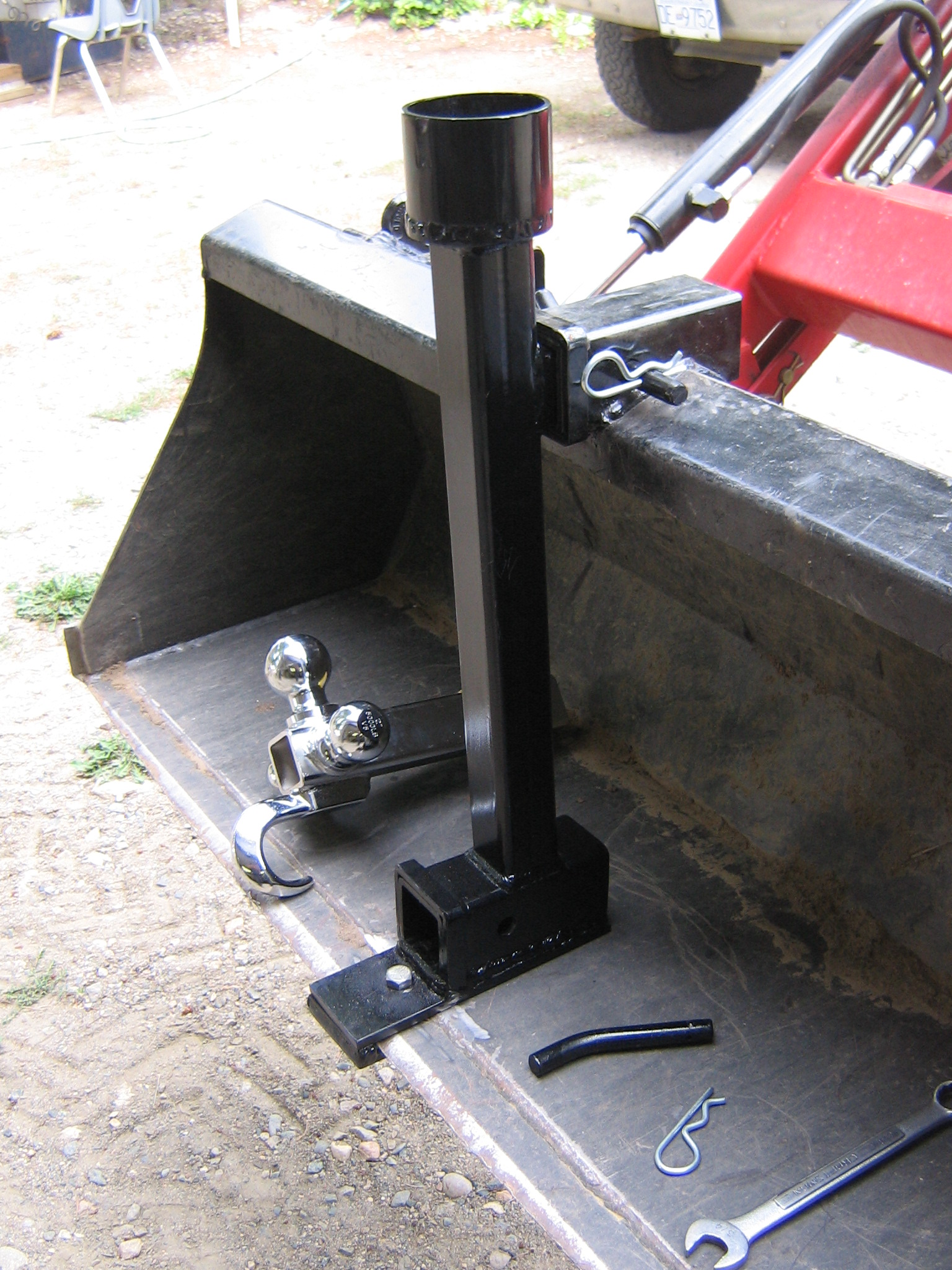 I made the adapter to strengthen the bucket for this task and to lower the hitch. This has worked well to move my trailers around, including my 5th wheel camping trailer using the cup on the top of the adapter.