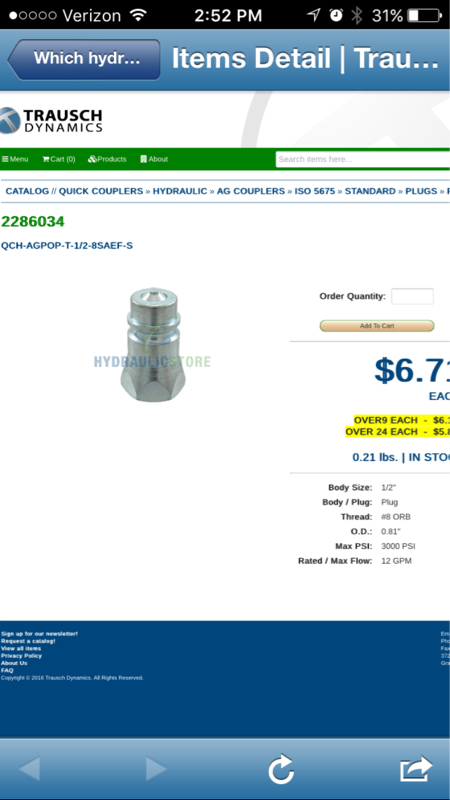 I have a 1/2" male O-ring end on the hydraulic hide and need it to fit my tractor side 3rd function quick attach.