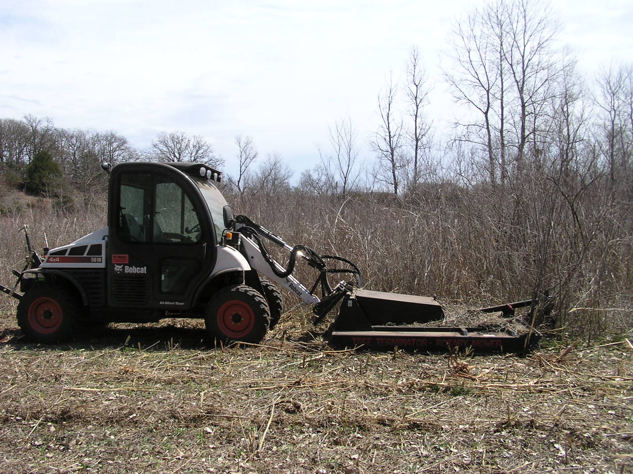 Imagine trying to mow with a deck out in front of you large enough to handle a single 4 or 5 ft blade. Seems like a potentially troublesome task.......The mower would be 5.5 ft deep (front to back)at a minimum.......