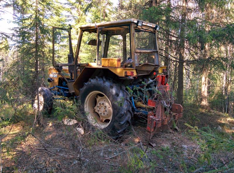 A large size tractor can handle difficult ground in the woods