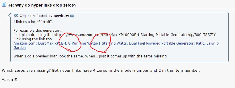 When I do a preview both look the same. When I post it comes up with the zeros missing