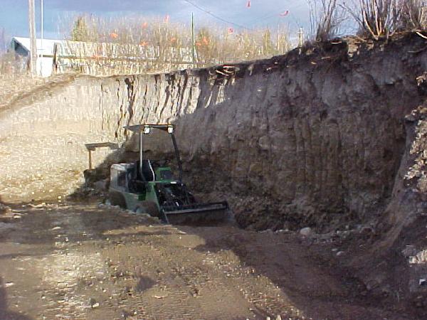 After mini how pulled down hillside, used large bucket to remove dirt for the new garage site.